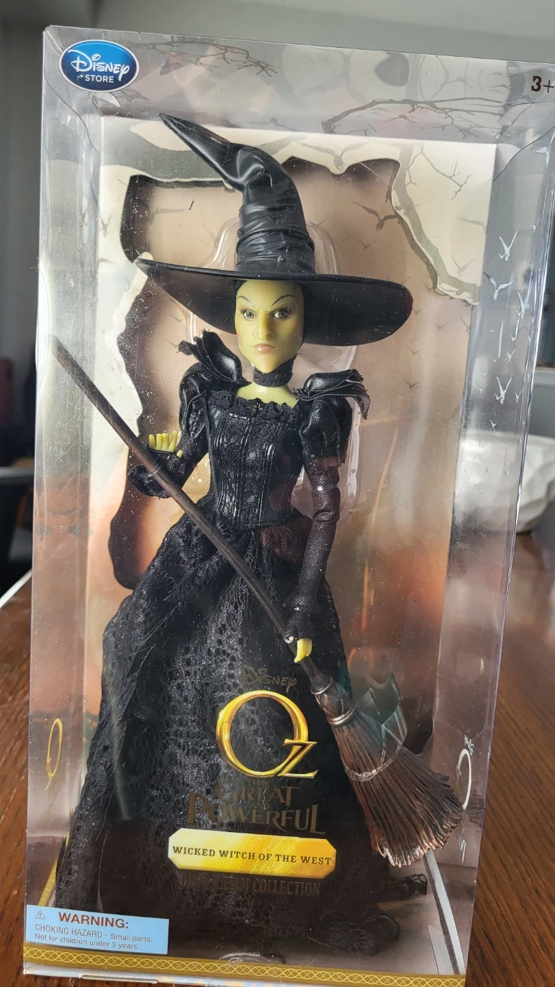 This Disney Store doll features the Wicked Witch of the West from 'The Great and Powerful Oz'. It's part of the Disney Collectible Collection and comes in its original packaging.