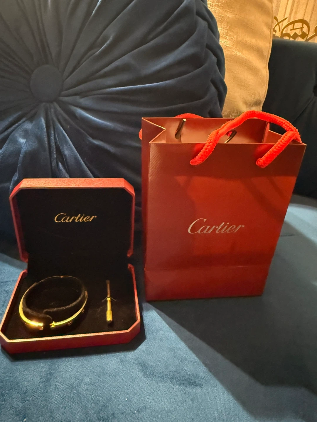 Selling a beautiful Cartier Love bracelet in gold. It comes with its original box and the screwdriver. This iconic bracelet is a timeless piece! I received this as a gift and never wore it.
