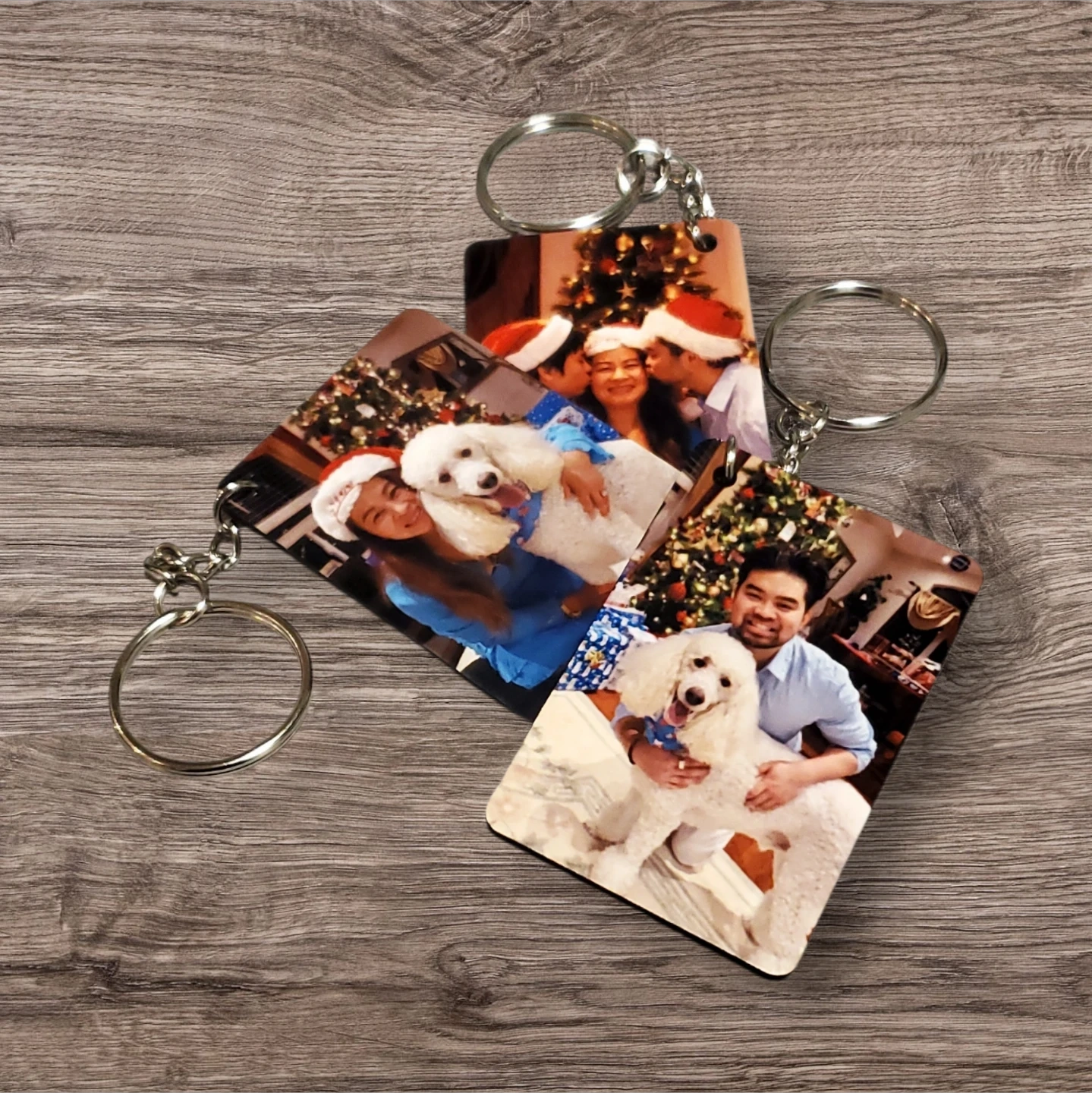 Each keychain features your personalized photo with vibrant color and crisp detail—ideal for holiday gifts or everyday charm.