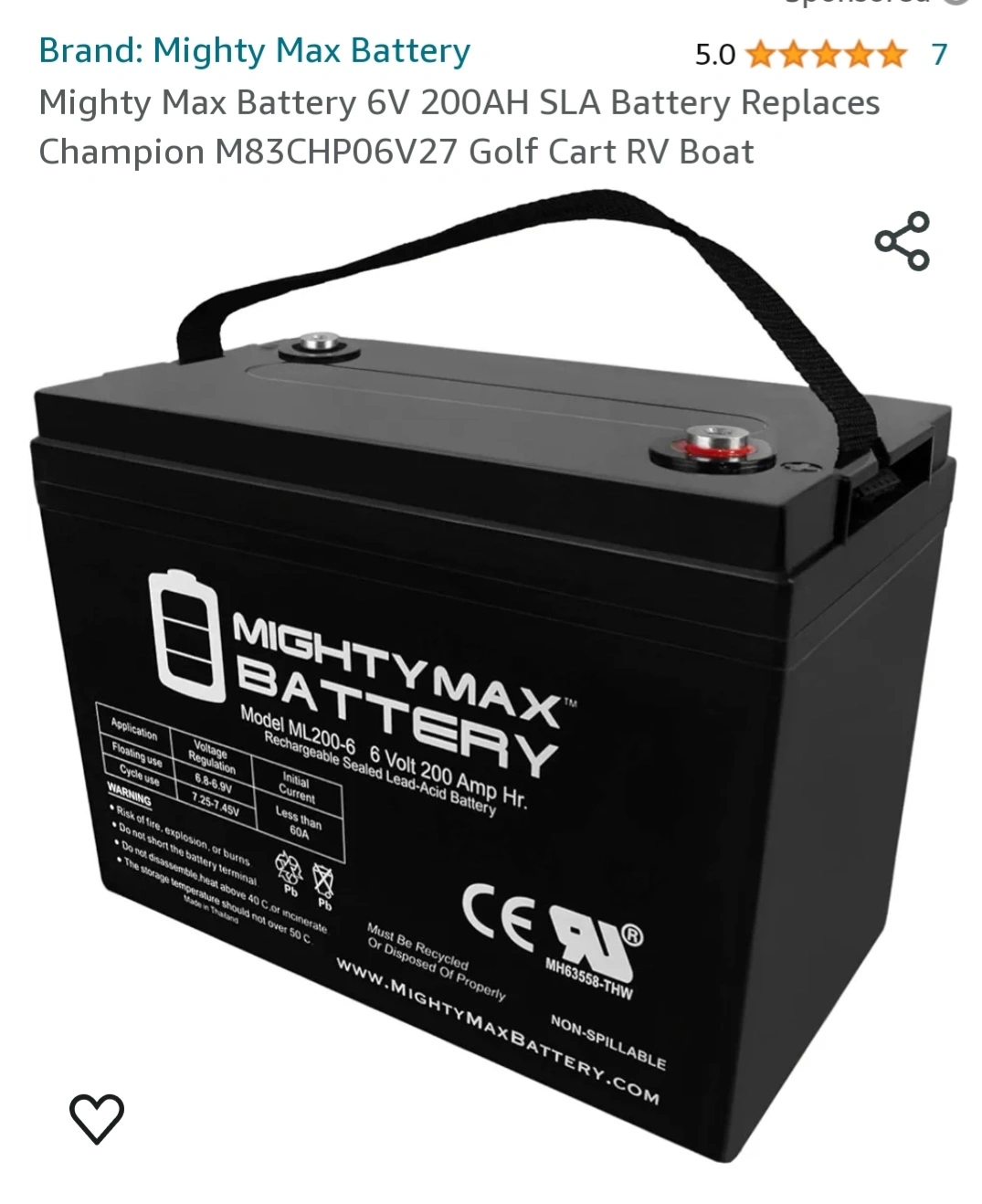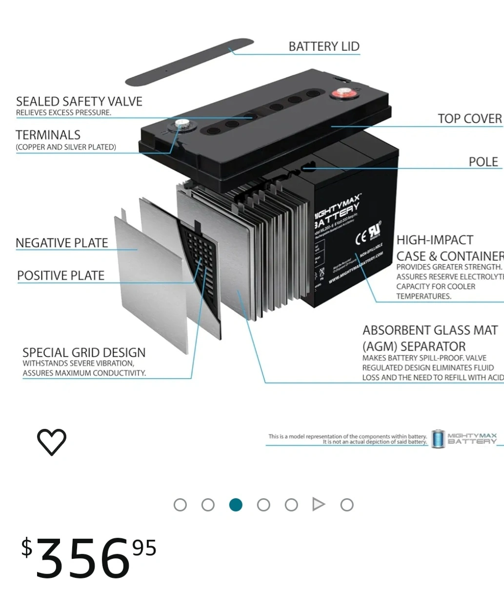 Mighty Max 6volt 200AMH deep cycle rechargable battery. 356.00 msrp.