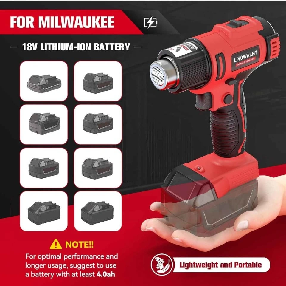 LIVOWALNY Cordless Heat Gun + Nozzles (Milwaukee 18V compatible)