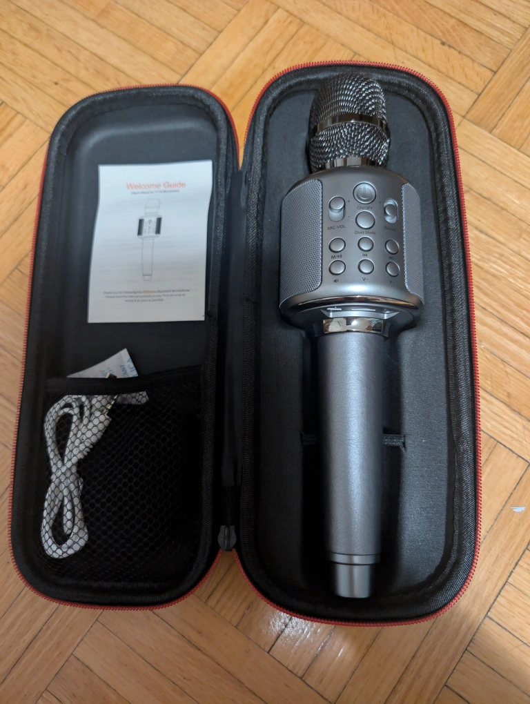 Selling a wireless Bluetooth karaoke microphone in new condition! It comes with its original case and a charging cable.