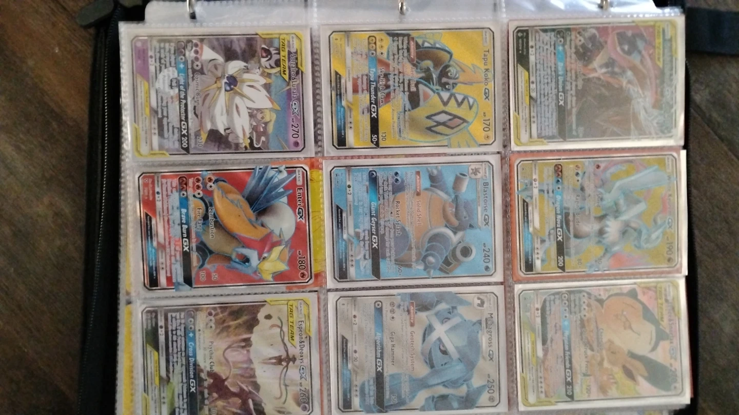Collection of various Pokémon trading cards, featuring different Pokémon and trainers. Includes some rare V and GX cards. Great for collectors or players looking to expand their deck! All really rare some very old if wanting the whole binder it would be 1250 I did add up all the cards prices and all are in mid conditions