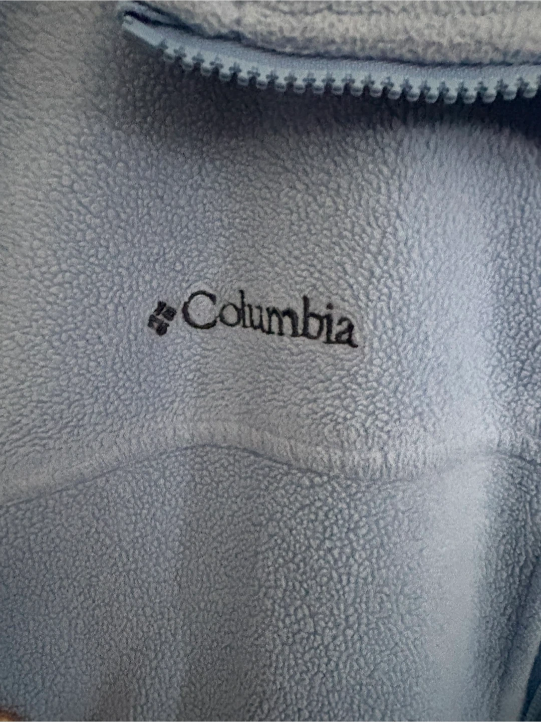 Light blue Columbia fleece jacket. Men's size large. Made of polyester material for warmth. It's great for layering on cooler days! Has draw strong sides of you like a more fitted look
