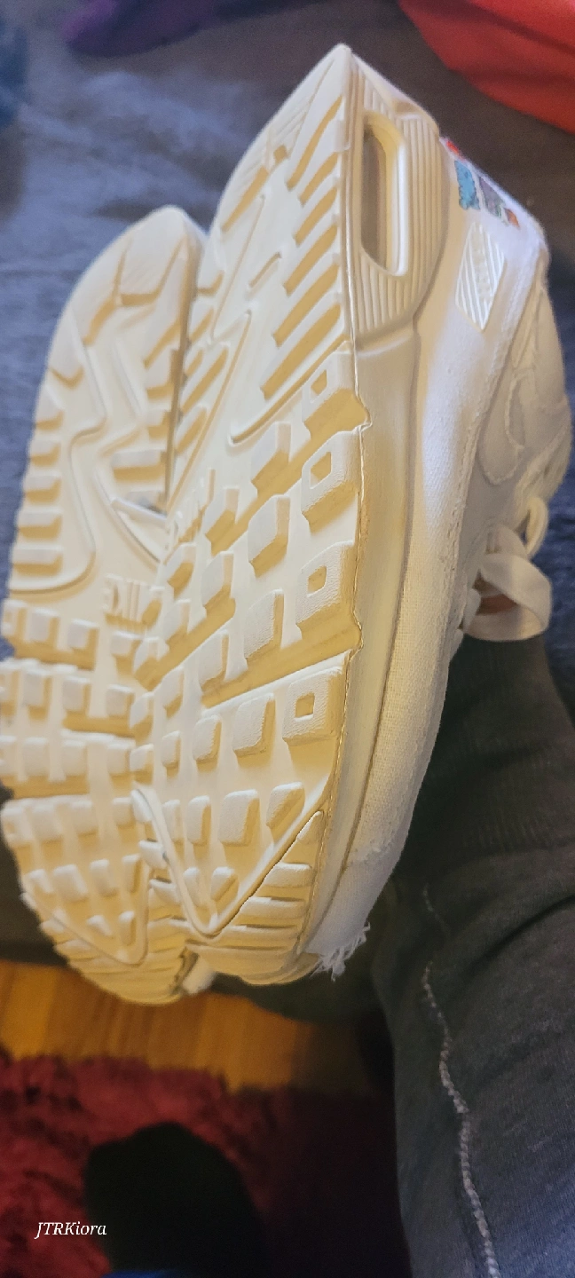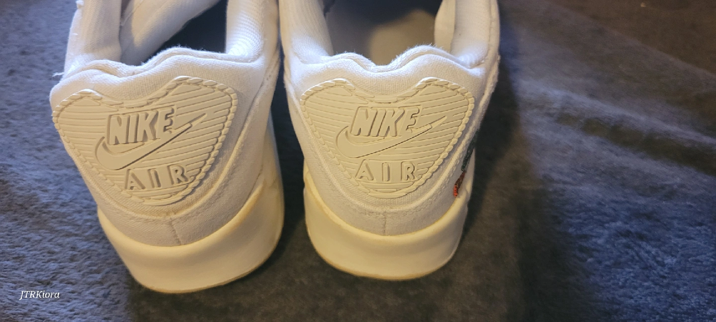Selling a pair of well-loved Nike Air Max 90 sneakers in white. They have some signs of wear, as you can see in the photos, but still have lots of life left! Perfect for casual wear or hitting the gym.
