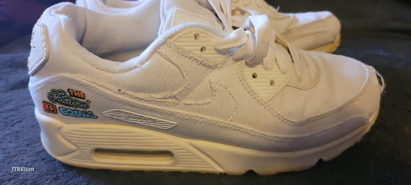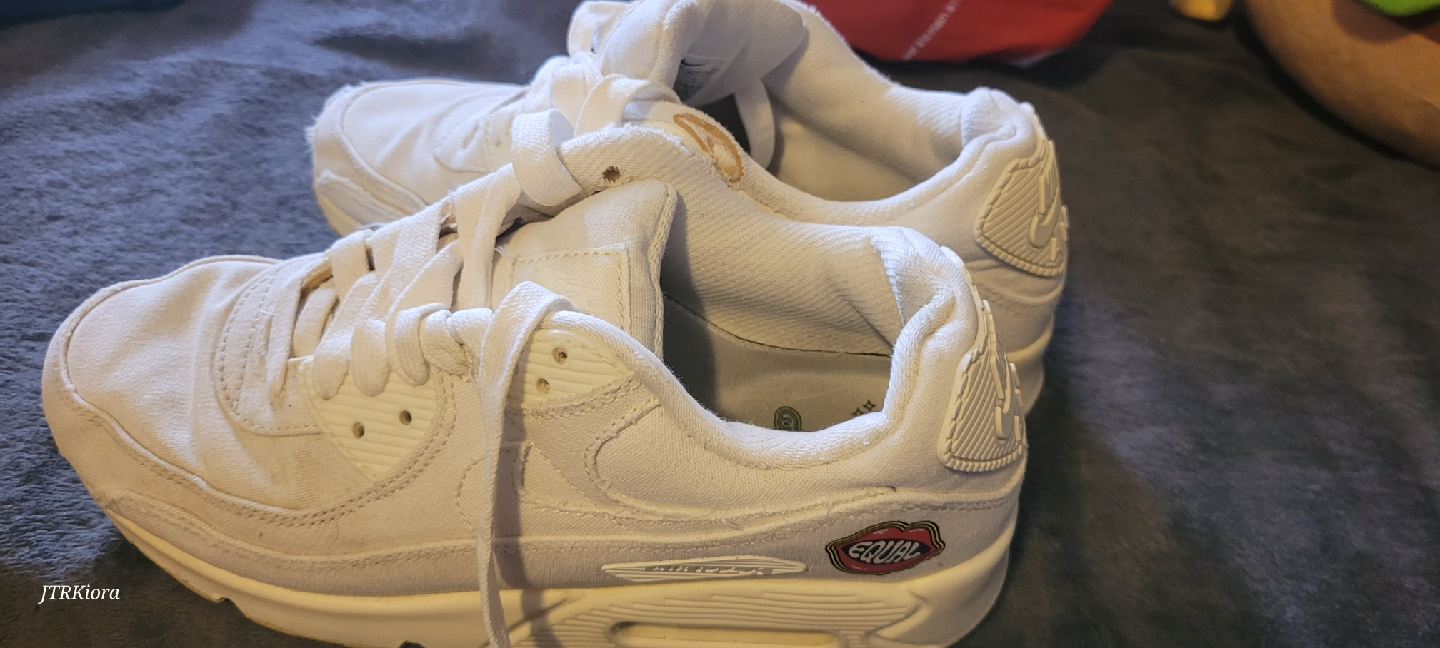Selling a pair of well-loved Nike Air Max 90 sneakers in white. They have some signs of wear, as you can see in the photos, but still have lots of life left! Perfect for casual wear or hitting the gym.