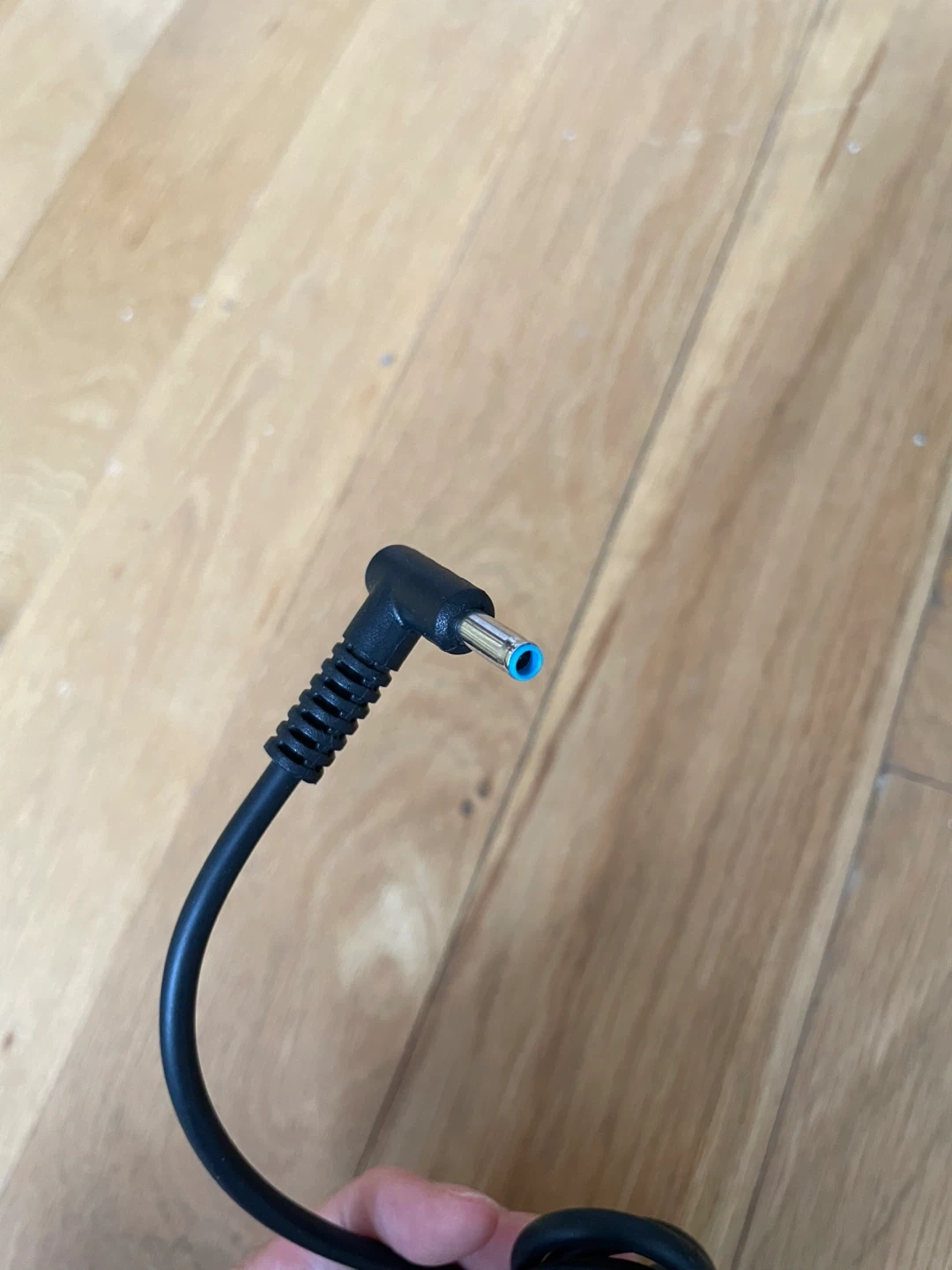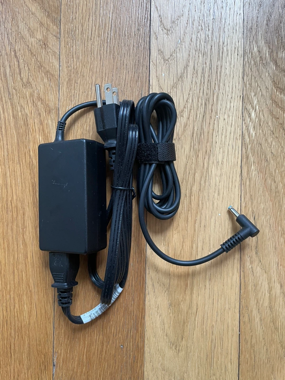 This is a black HP laptop AC adapter power supply cord. It's used for charging HP laptops. The cord comes with the power brick and the connector cable.