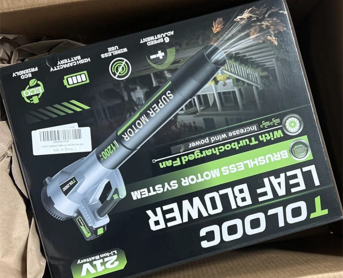 Selling a cordless leaf blower! It comes with a Li-ion battery and several attachments. The leaf blower features a brushless motor system with turbocharged fan and 6-speed adjustment. It's eco-friendly and has a high capacity battery. Box included!