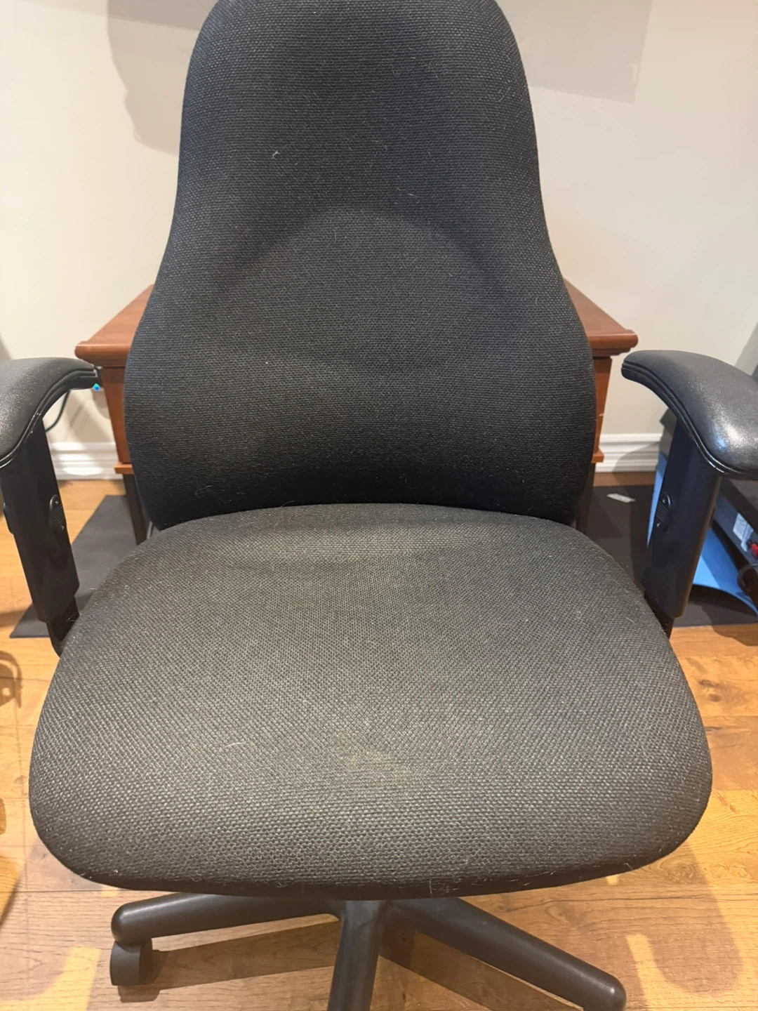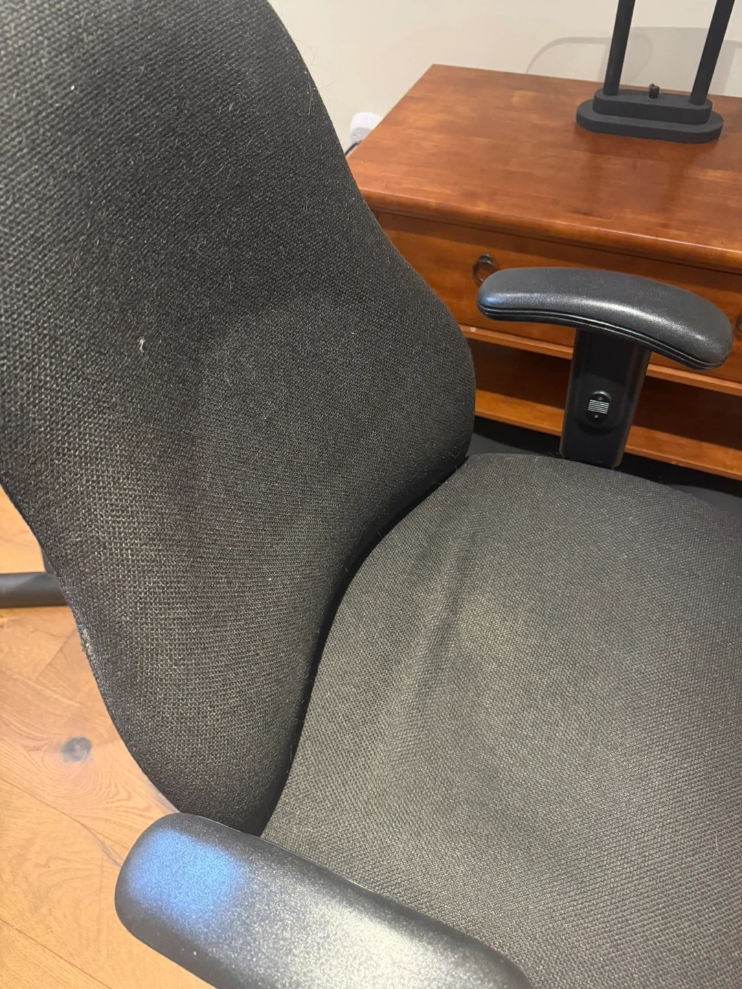 Buy & SellBlack Fabric Office ChairBlack Fabric Office Chair$50This is a black fabric office chair. It has adjustable height and armrests. Suitable for any home office setup. Very comfortable. Good condition.ConditionGoodWHERE TO MEETCheck LocationView MapSELLERverifiedZitaThe Hill1386 reviews0 chats·0 favorites·3 viewsSEND CHAT TO SELLERHi Zita! I’m interested in your listing.Hi Zita! I’m interested in your listing.Get the Karrot app to chatSign In to chat