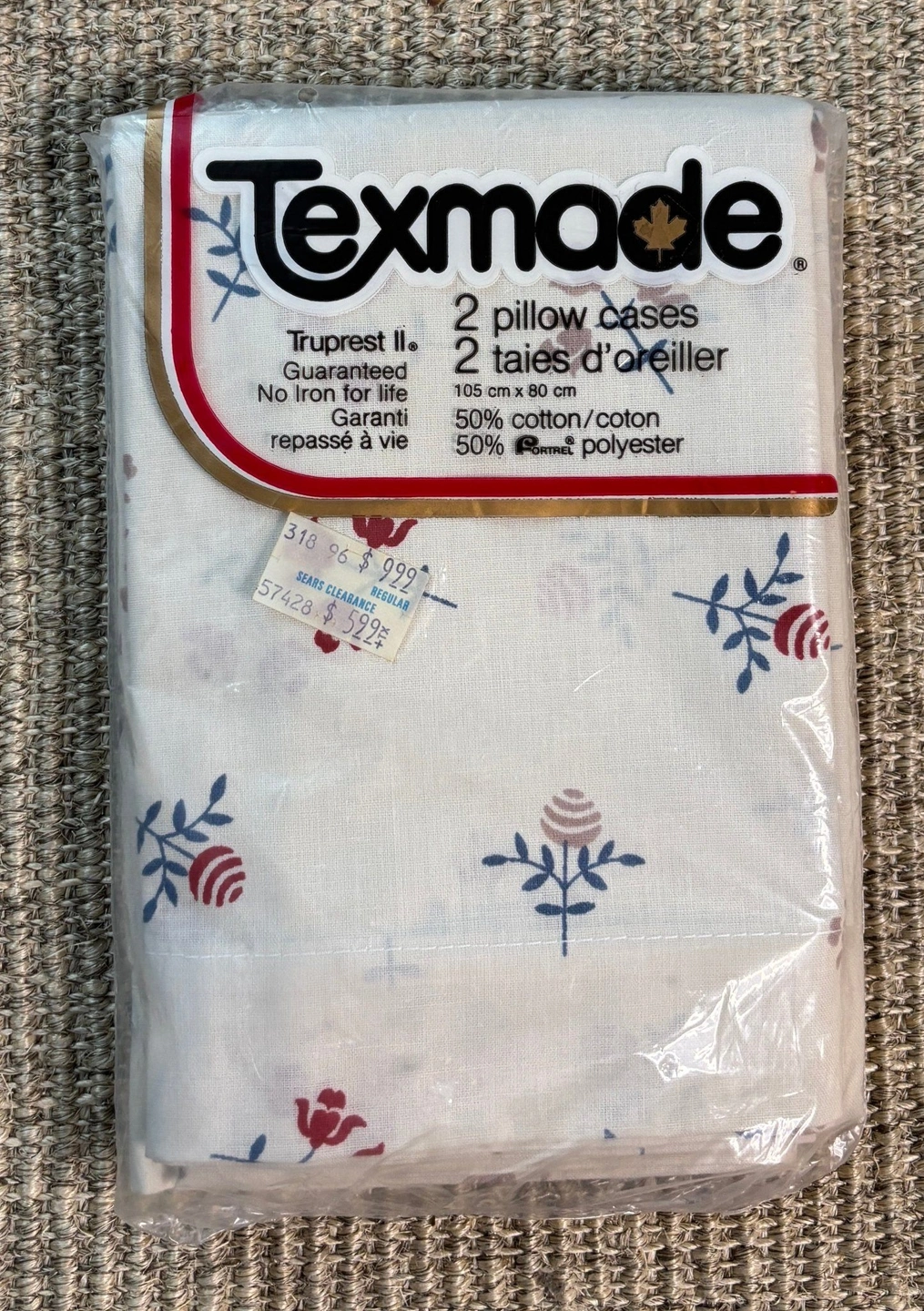 These Made in Canada Tex Made Truprest Flower Theme Pillowcases measure approximately 32x20 inches or 82x52cm flat and are considered Queen Sized. They are brand new in their original package and were removed solely for taking pictures for this listing.