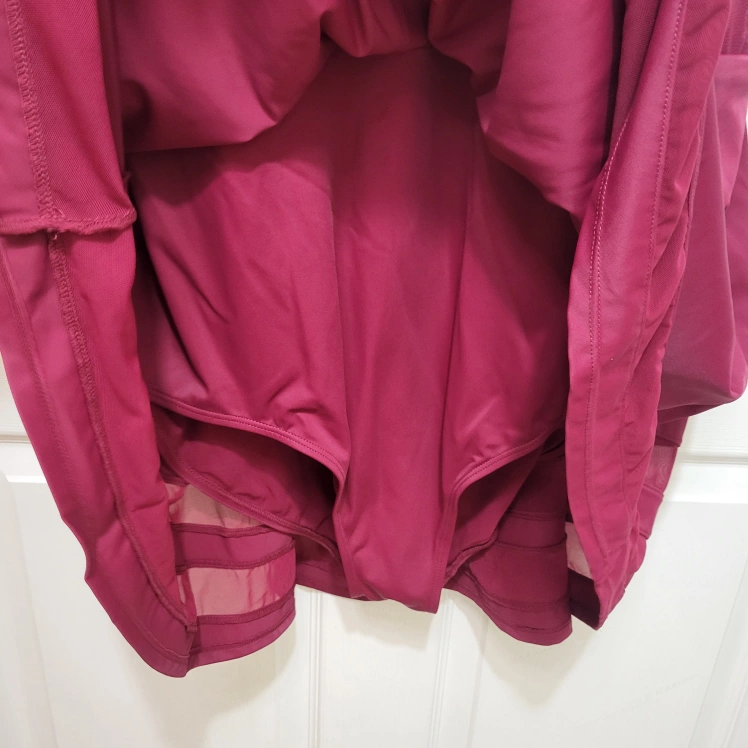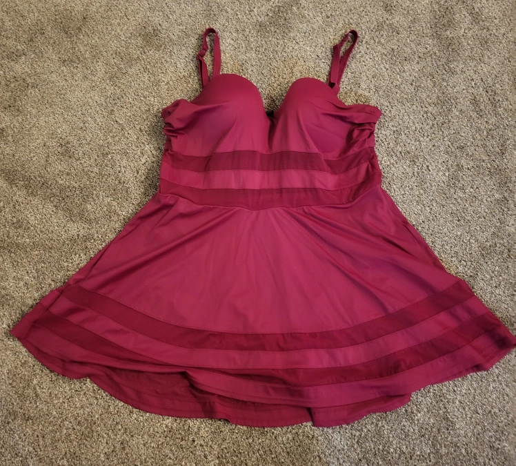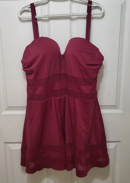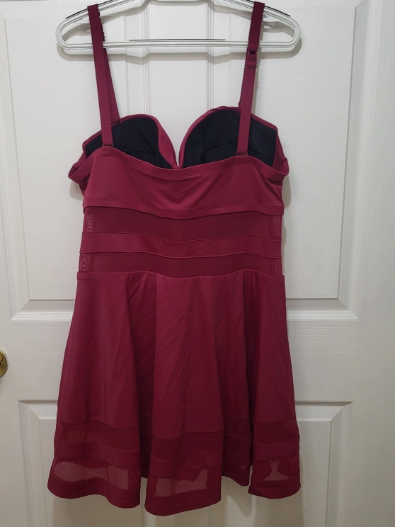 this stunning pre-owned Torrid Beet Red Lightly Lined Skater Swimsuit. This beautiful one-piece swimsuit features an underwired swim top style with a solid pattern and lace accents. The swim bottom style is a swim skirt, providing a comfortable and flattering fit for any body type.