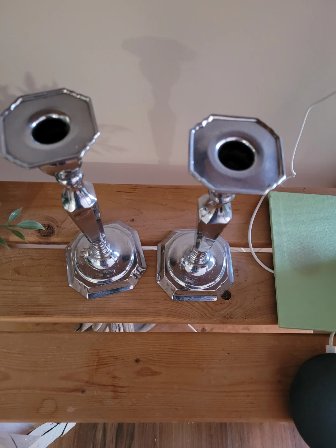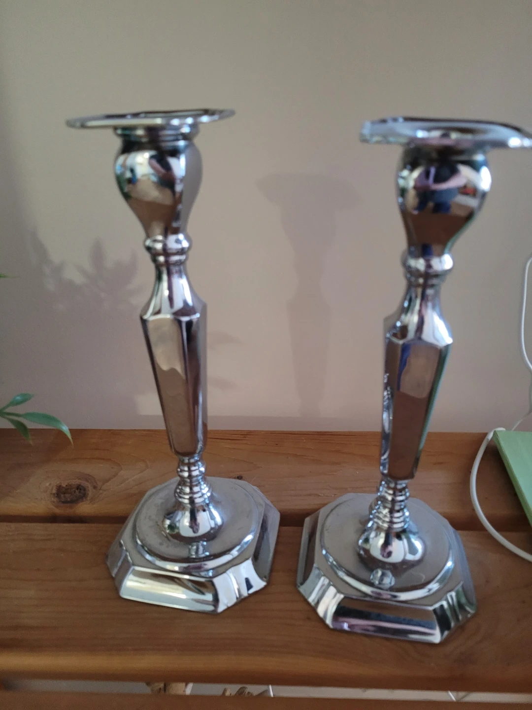This pair of elegant candlesticks is silver-plated. They're marked EPNS CANADA with the number 925. Adds a touch of class to any table setting!