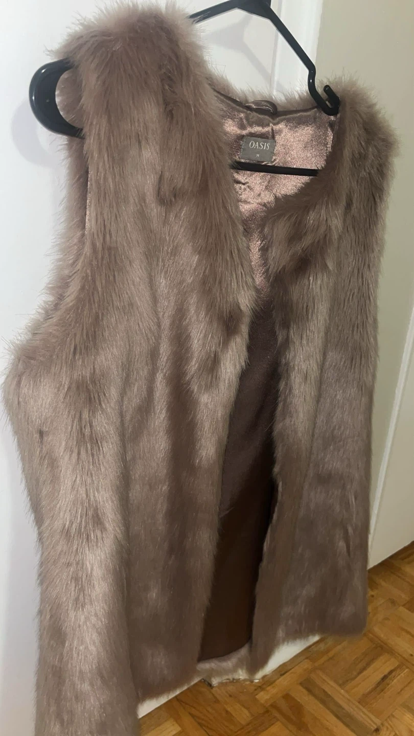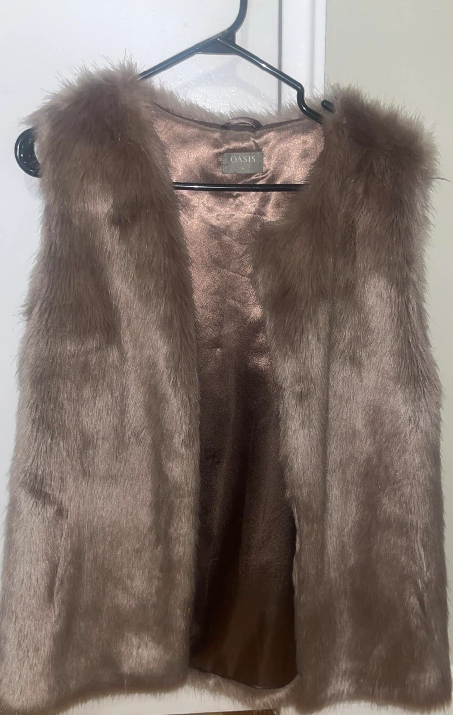 Selling a lovely Oasis faux fur vest! It's a size small and in great condition. The colour is a beautiful neutral brown, perfect for layering during the cooler months. It's super soft and adds a touch of cozy chic to any outfit!