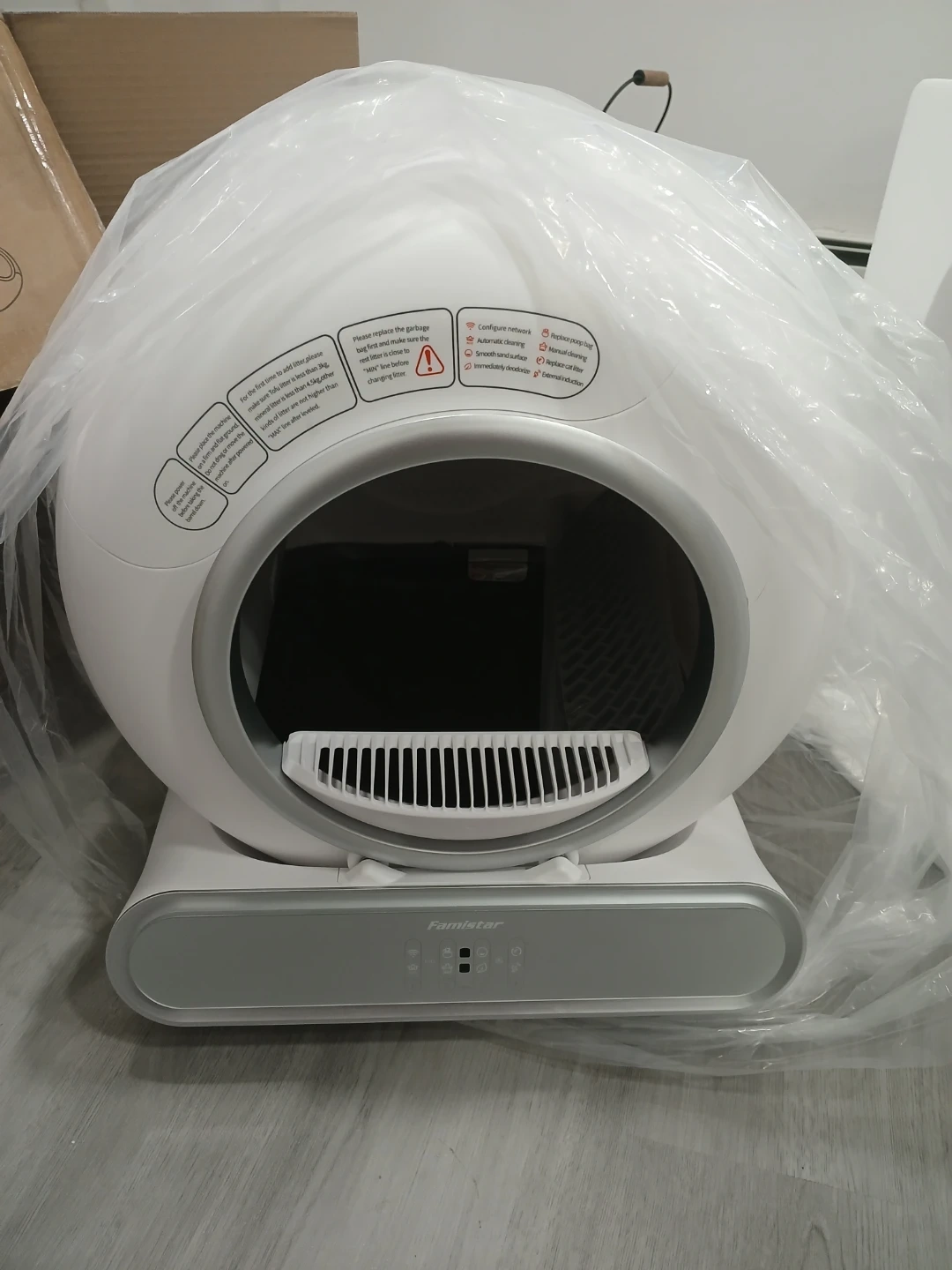 Selling a brand new Famistar automatic cat litter box! It's still in its original packaging and has never been used. The box includes instructions for easy setup.