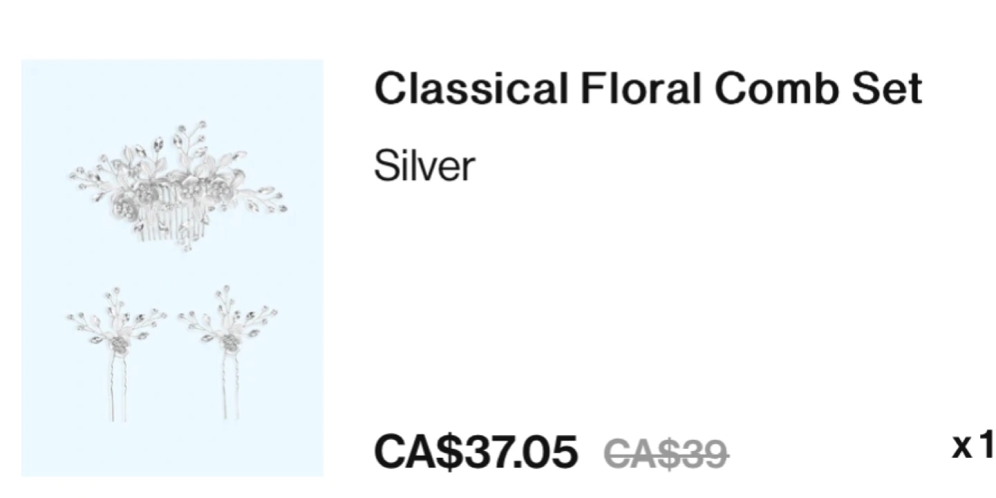Buy & SellBridal Hair Pieces (Azazie)Bridal Hair Pieces (Azazie)$20Azazie Classical Floral Comb Set in silver. Discontinued item, originally paid 37$ for it. See my profile for other bridal items and jewelry options!ConditionNewWHERE TO MEETCheck LocationView MapSELLERverifiedBrittanyOrléans Avalon832 reviews0 chats·0 favorites·4 viewsSEND CHAT TO SELLERHi Brittany! I’m interested in your listing.Hi Brittany! I’m interested in your listing.Get the Karrot app to chatSign In to chat