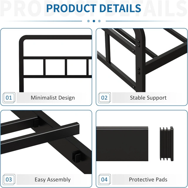 Easy Assembly - Installation can be done in just a few steps. All the tools needed are in the package. Simple and durable construction makes the bed frame queen size noiseless and non-shaking.