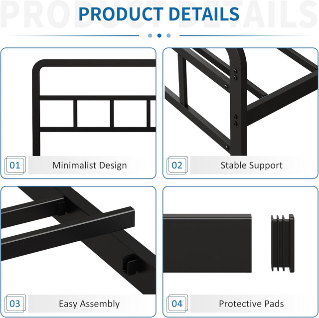 Stand The Test Of Time - Queen size bed frame with headboard and footboard is made of high-quality materials with reinforced legs that prevent structural deformation and support up to 3000 pounds.