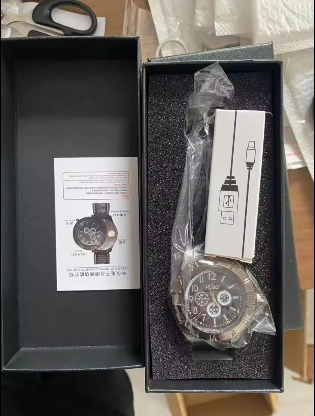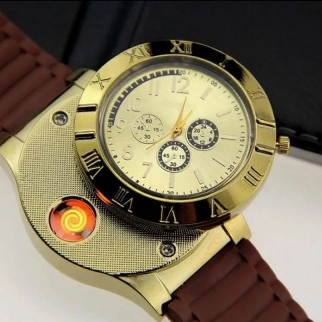 -the silver gold and black in the next photos have the watch face slide over and exposes a lighter element creating a lighter for your needs. Rechargeable with USB cable provided. These are $40 Each.