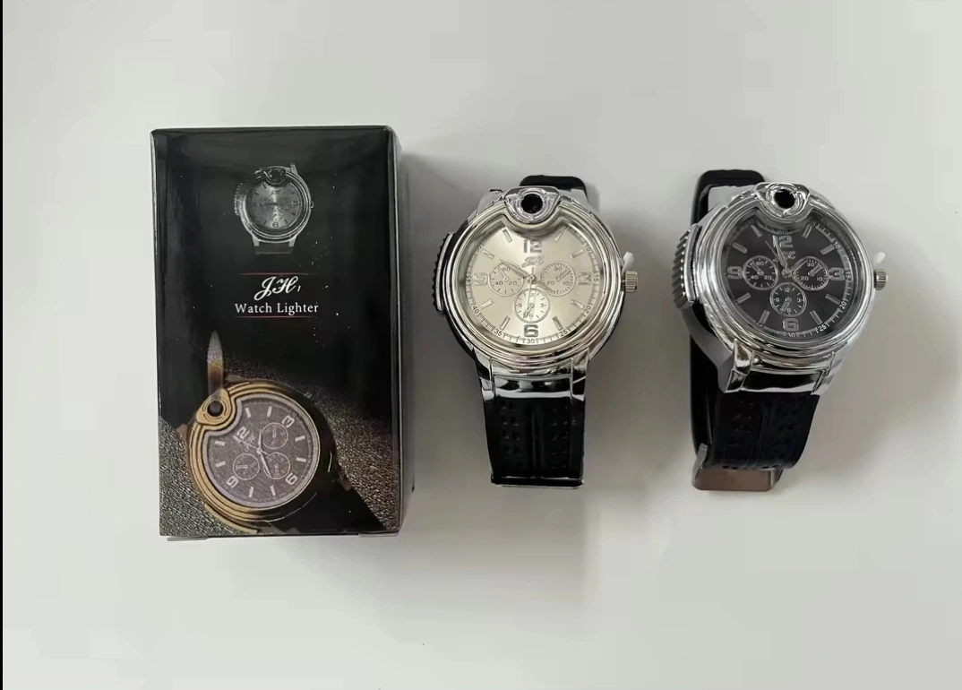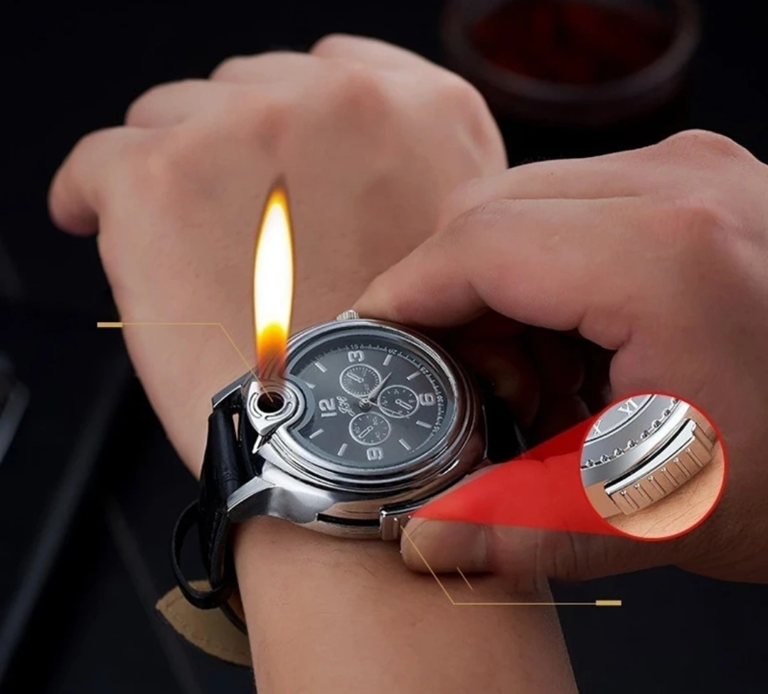 - 3rd picture the watch shoots a flame for your lighter needs. Come in white or black face watch. Each is $35