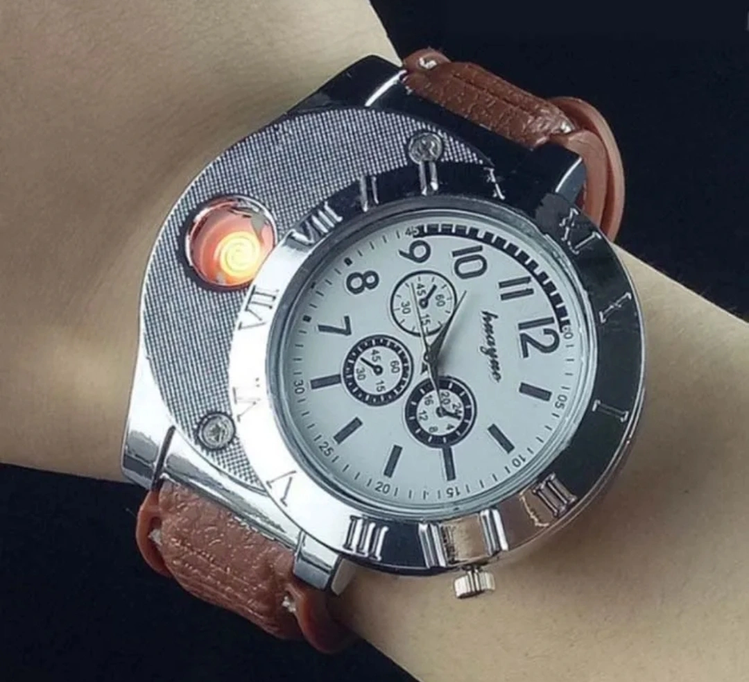- 3rd picture the watch shoots a flame for your lighter needs. Come in white or black face watch. Each is $35