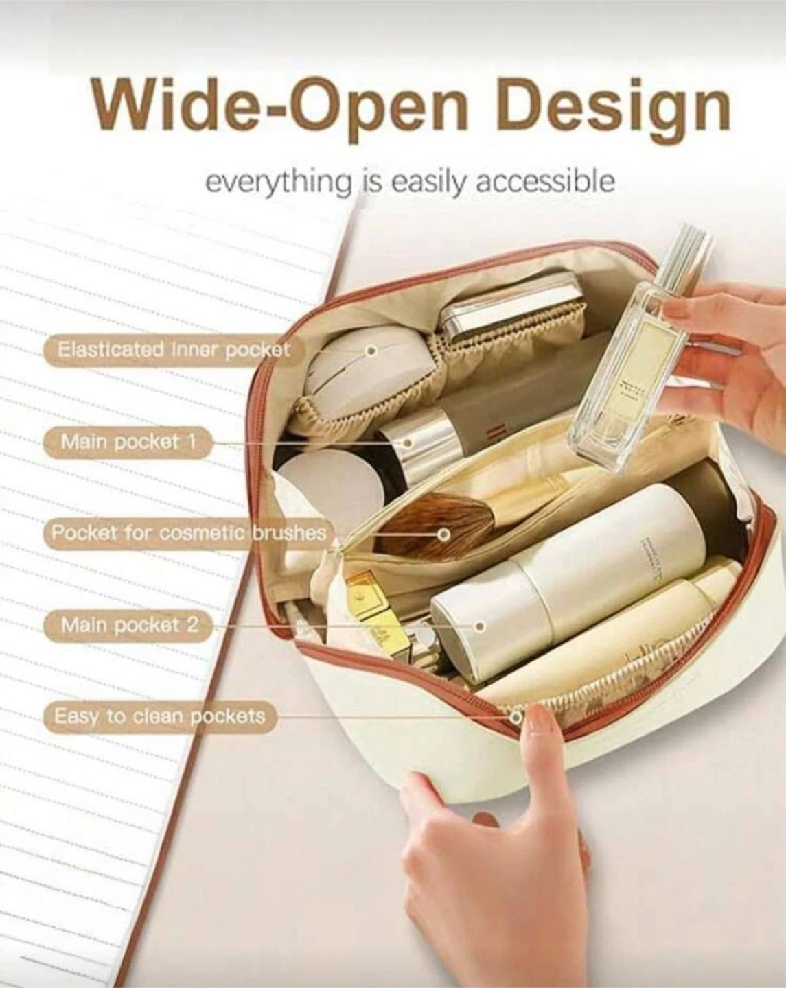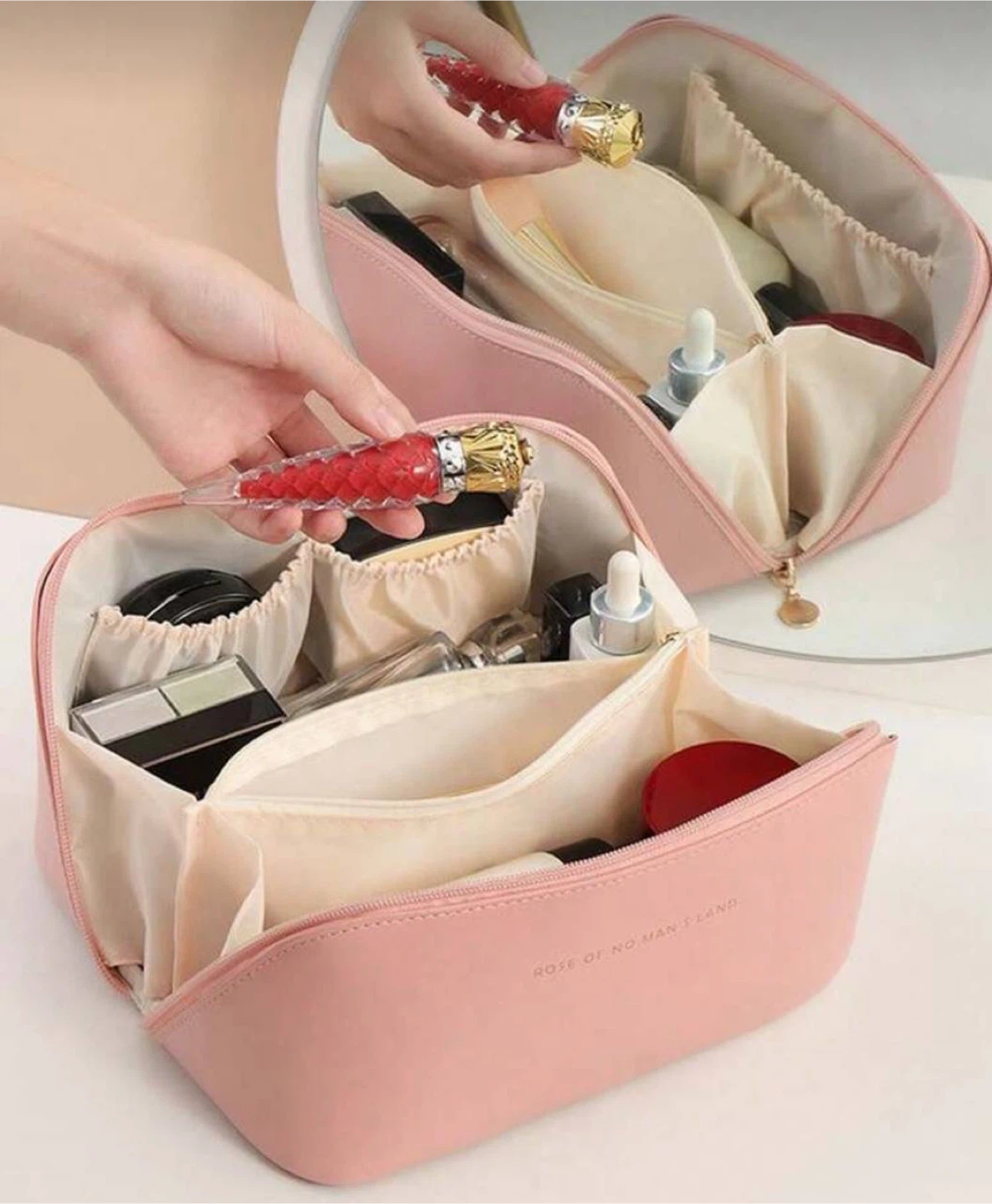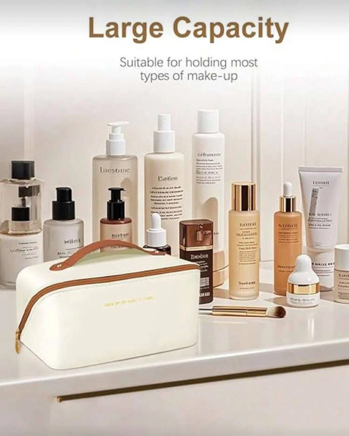 ✨ Multiple compartments for brushes, skincare, and makeup