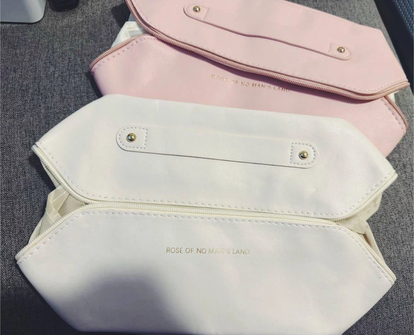 Brand new spacious cosmetic bag with handle, available in pink or white.