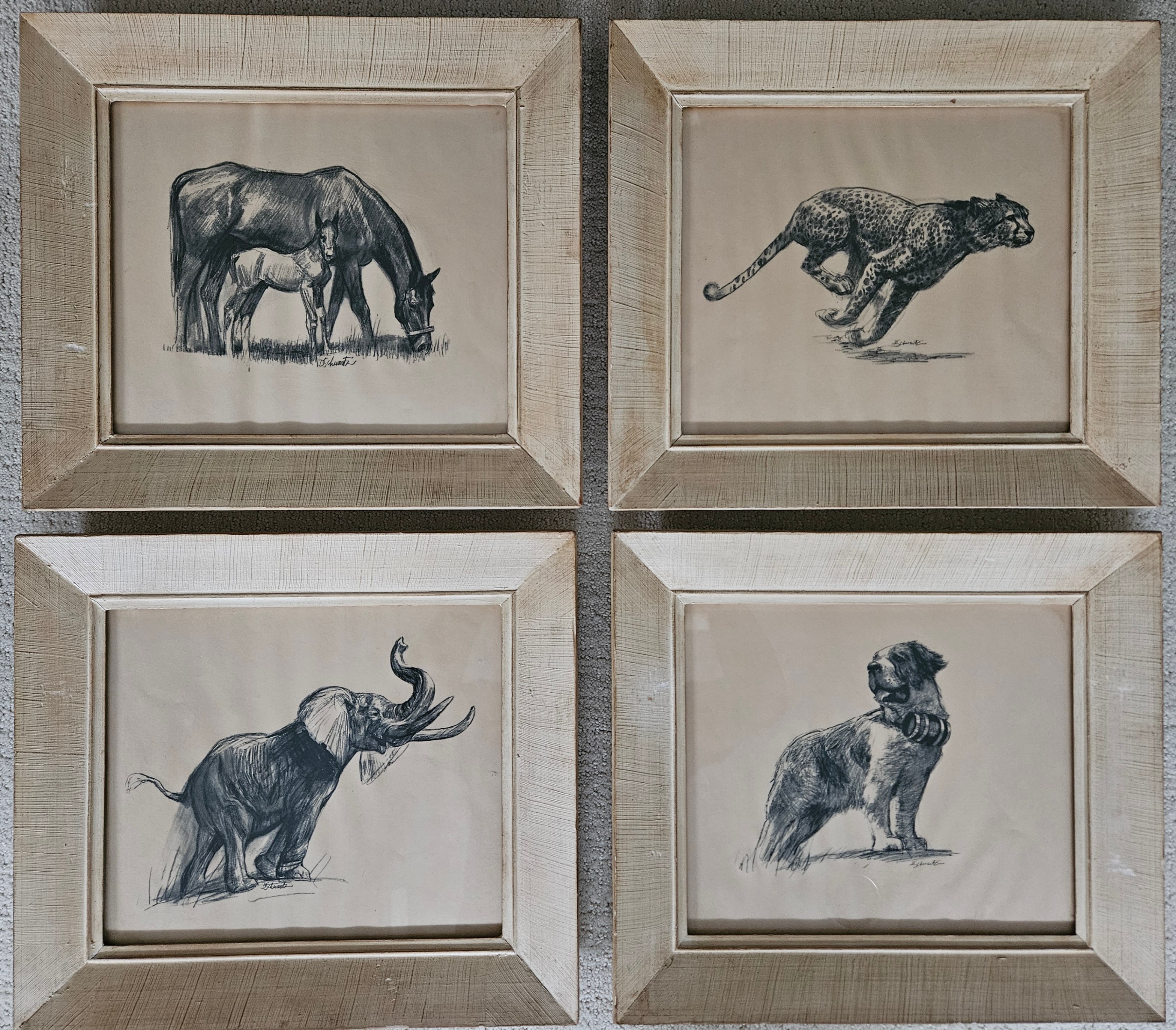 Animal Prints by D. Schwartz, 4 pieces, framed