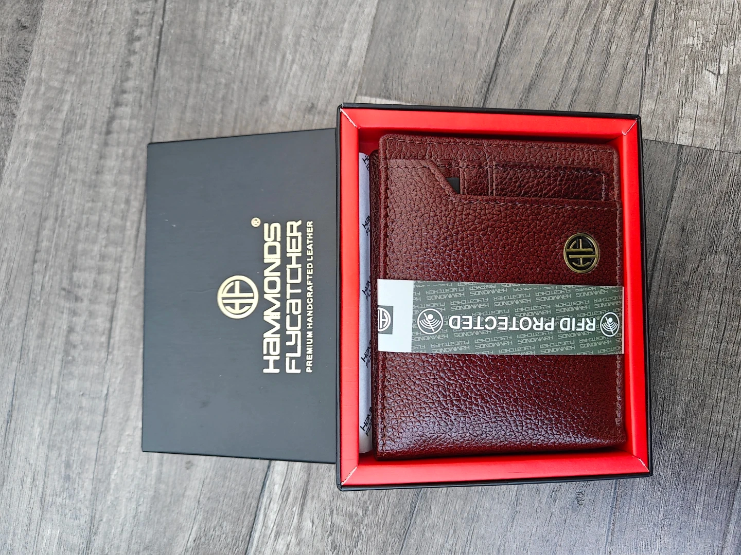 Hammonds Flycatcher men's wallet. Premium handcrafted leather construction. Features RFID protection and multiple card slots. Comes in original box.