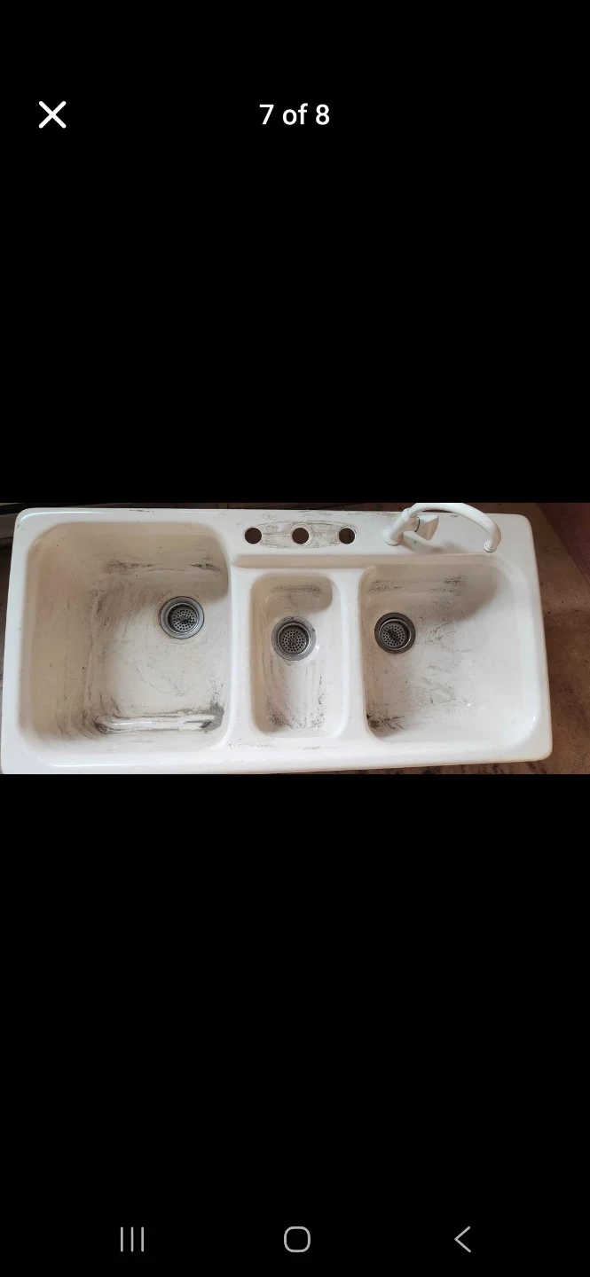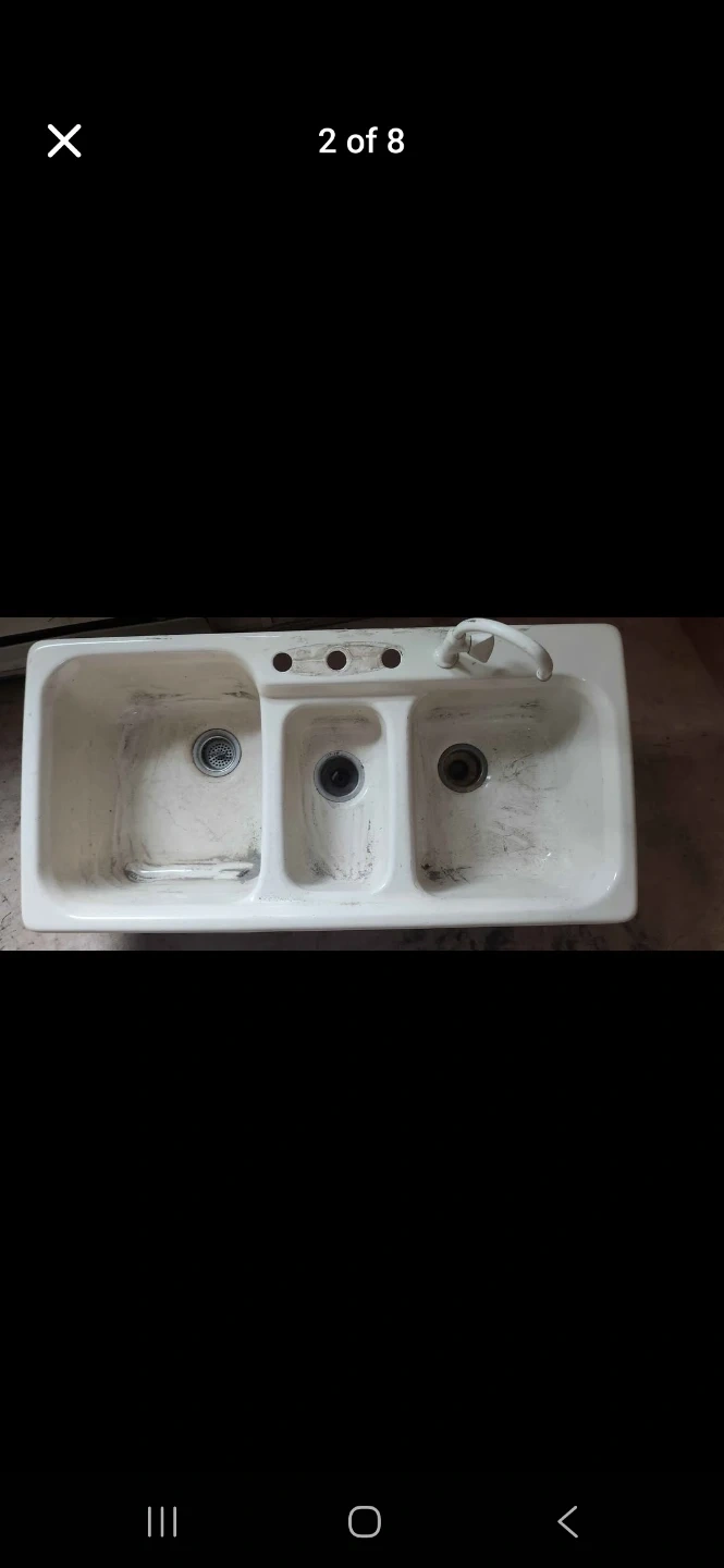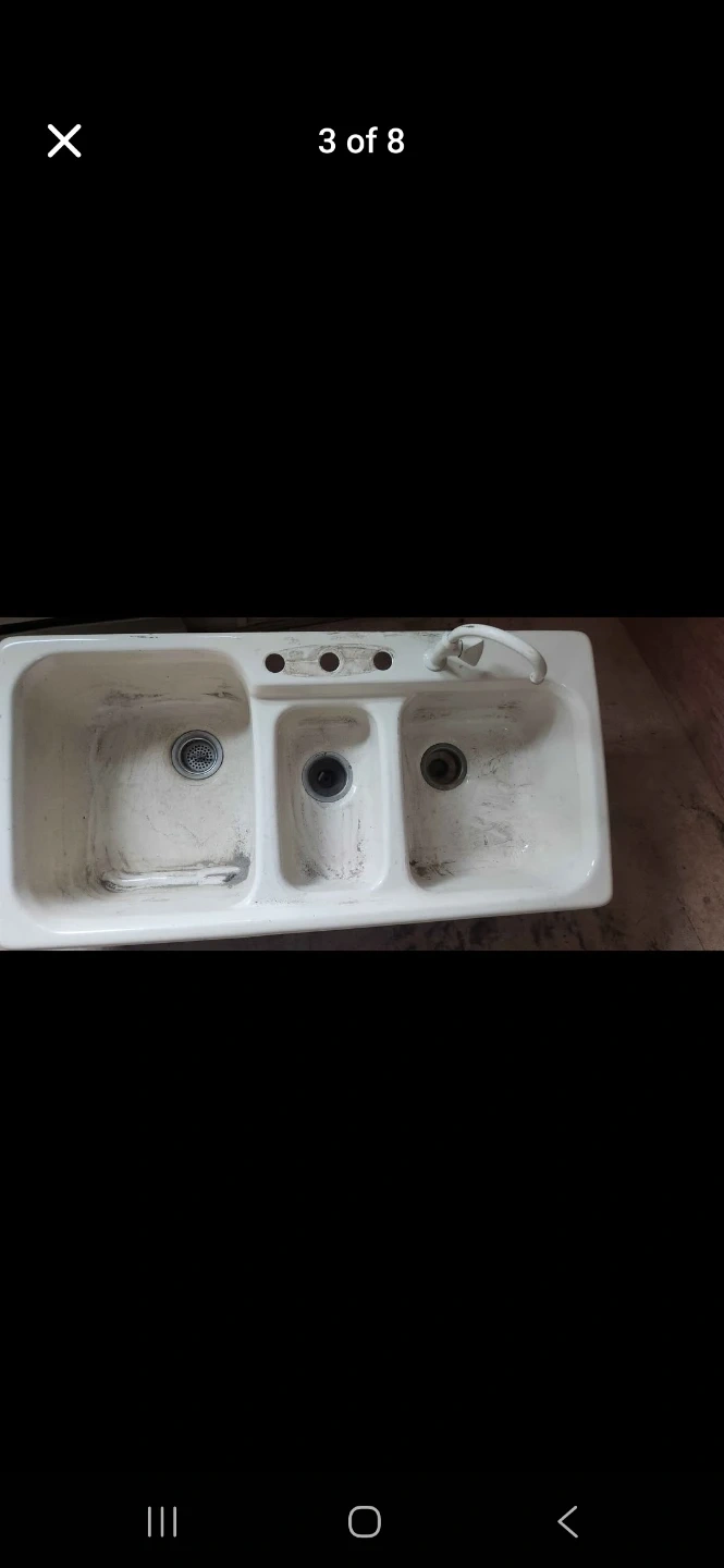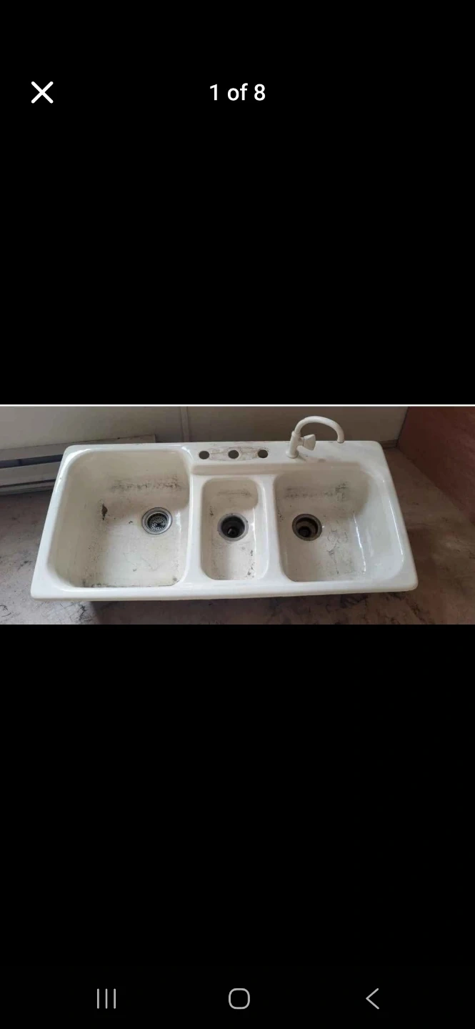 Buy & SellWhite 3-Basin Kitchen Sink with FaucetWhite 3-Basin Kitchen Sink with Faucet$232This is a white kitchen sink with three basins and an included faucet. It's made of durable material. Vintage cast iron sinkWHERE TO MEETWest Heights ElementaryView MapSELLERmaxMission00 reviews0 chats·0 favorites·4 viewsSEND CHAT TO SELLERHi max! I’m interested in your listing.Hi max! I’m interested in your listing.Get the Karrot app to chatSign In to chat