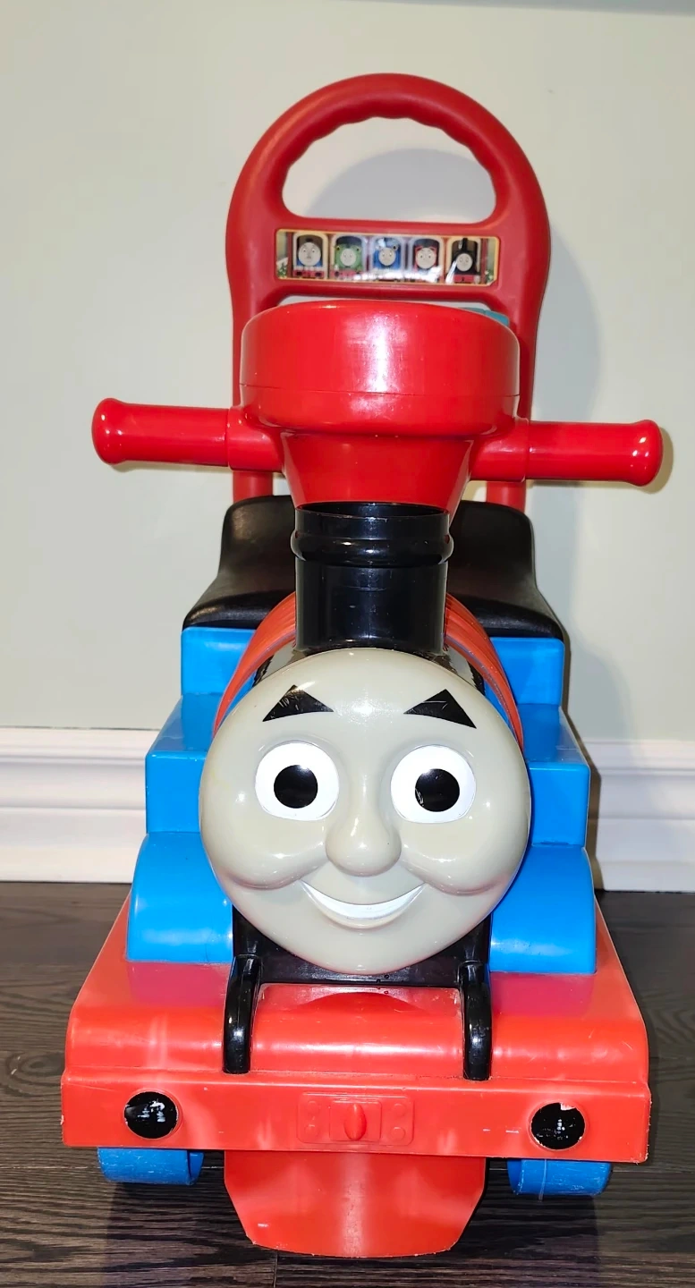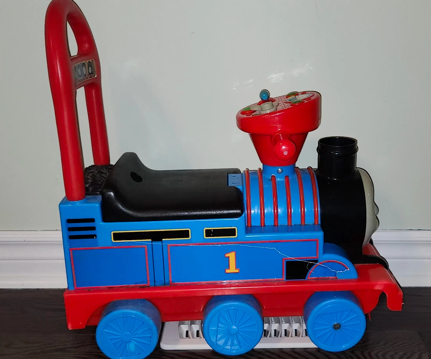 Choo Choo! All aboard! This Thomas the Train ride-on toy is ready for a new conductor. It's in good condition and ready for lots of fun adventures!