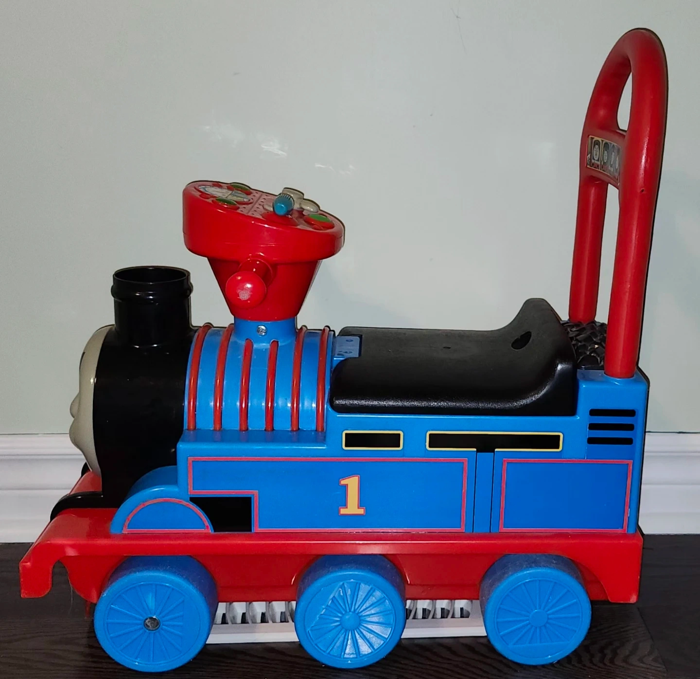 Choo Choo! All aboard! This Thomas the Train ride-on toy is ready for a new conductor. It's in good condition and ready for lots of fun adventures!
