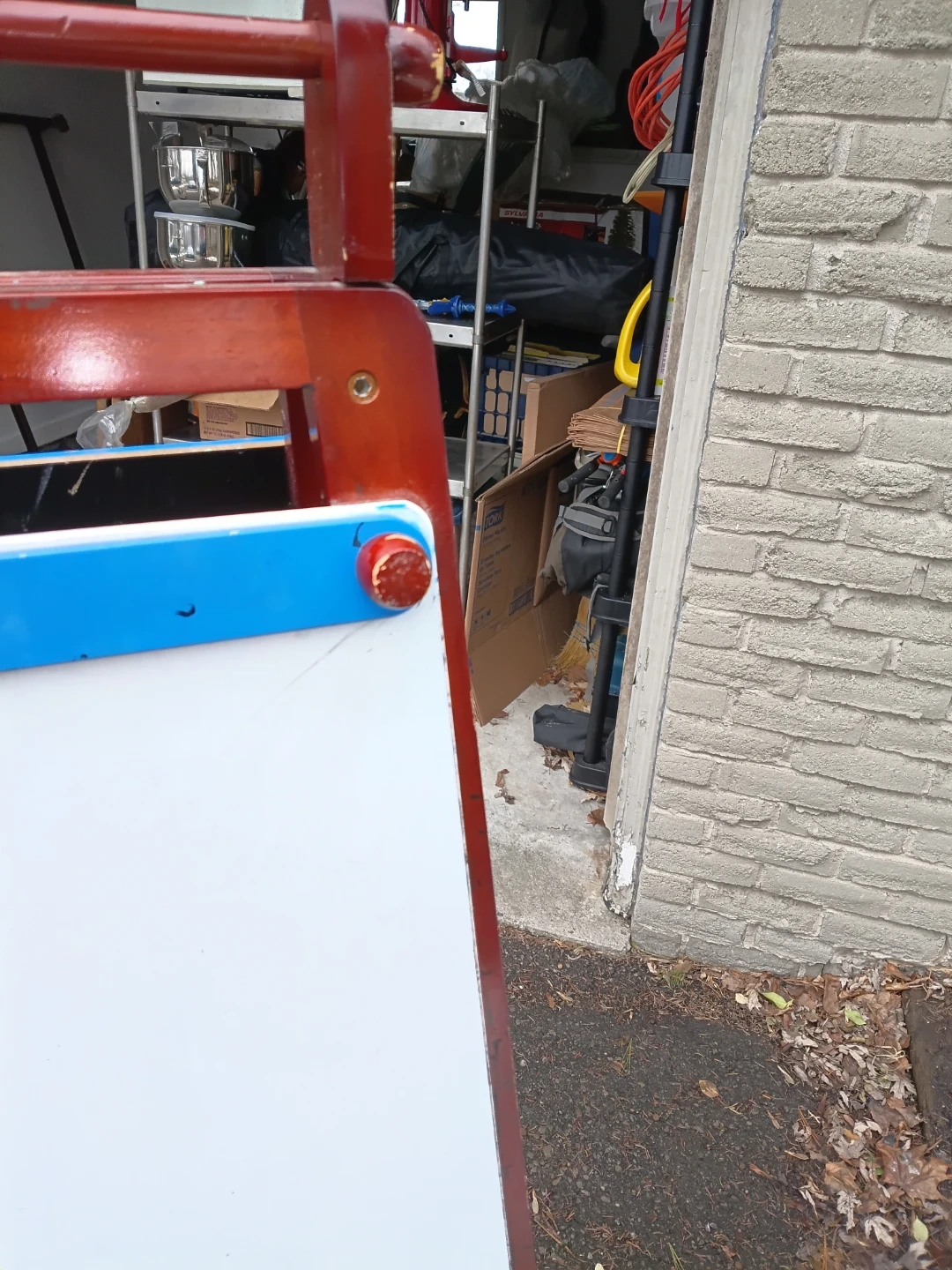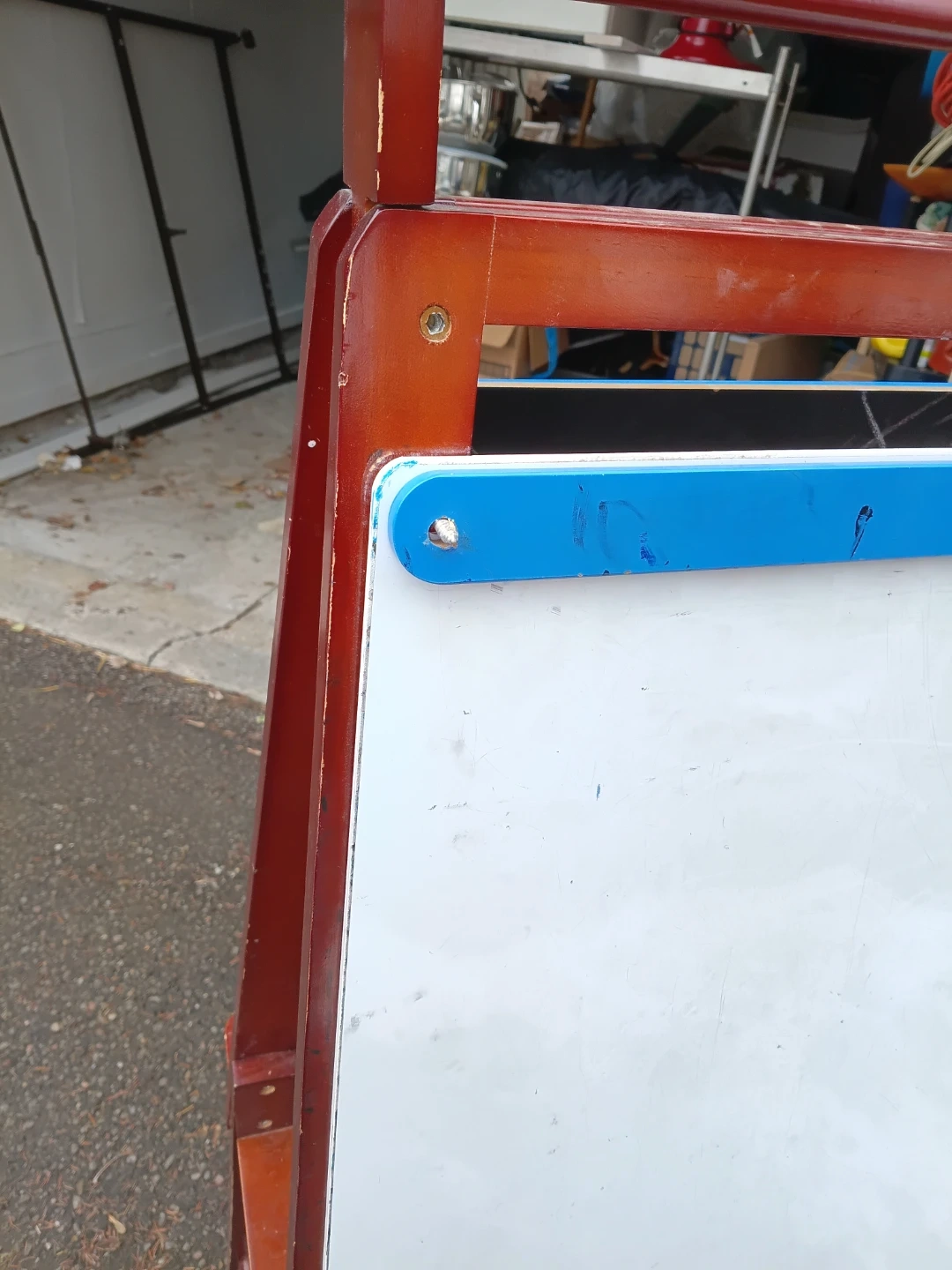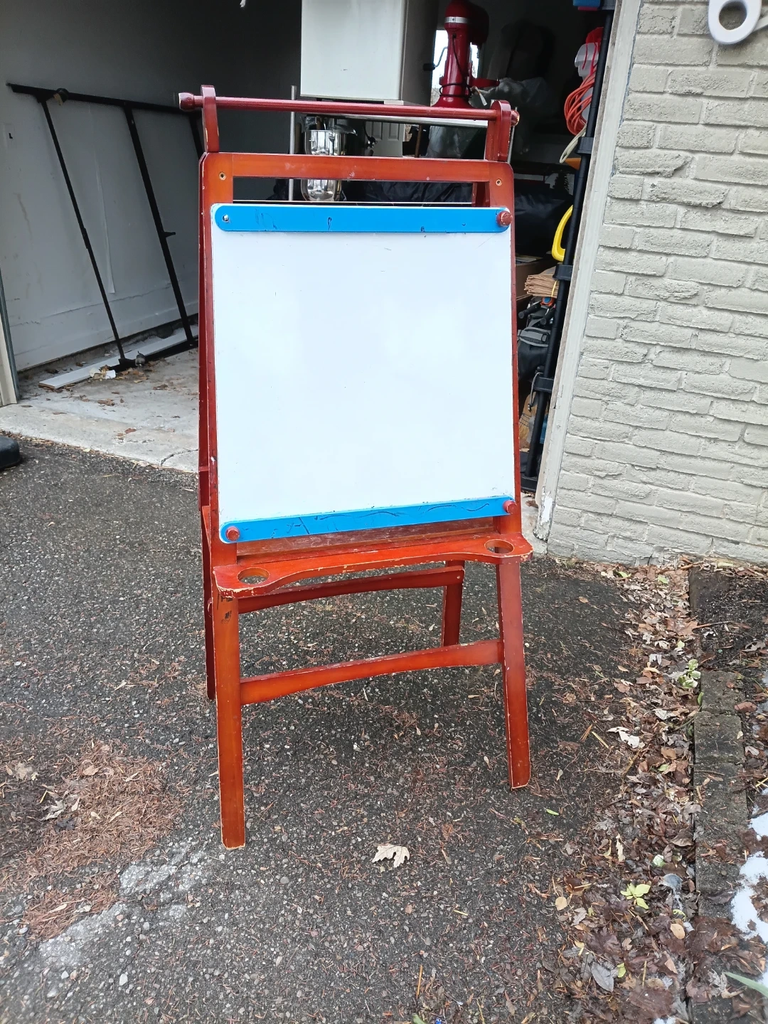 A versatile wooden easel featuring a whiteboard on one side and a chalkboard on the other. It has a convenient shelf for art supplies. This easel is great for encouraging creativity in kids!