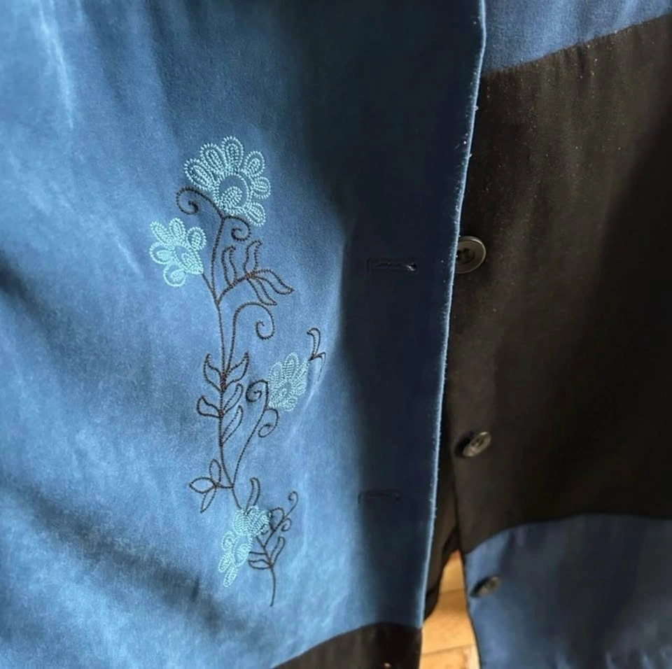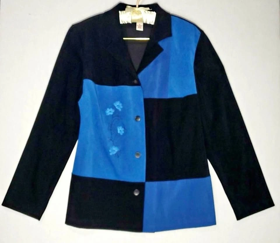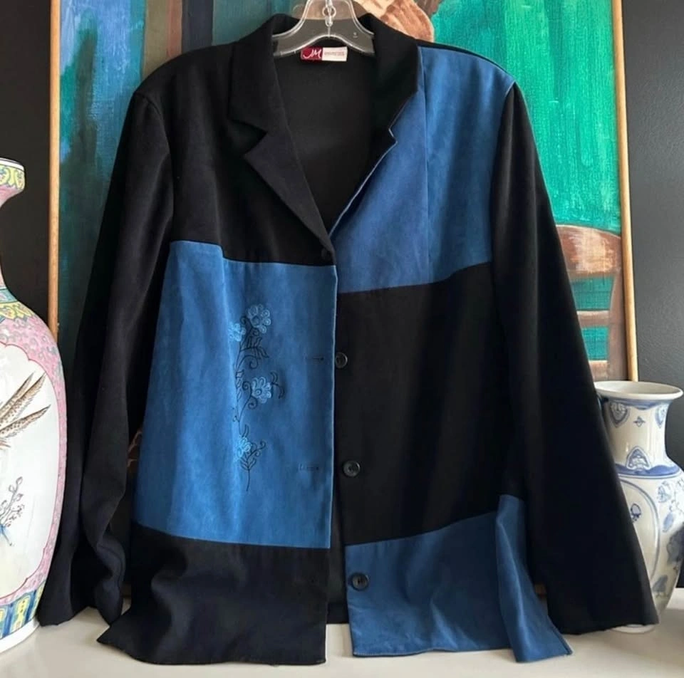 Barely worn, in great condition. Some minor pilling as shown. Size US L. Chic black and blue jacket from JM Collection. Stylish women's jacket featuring a striking black and blue color block design.