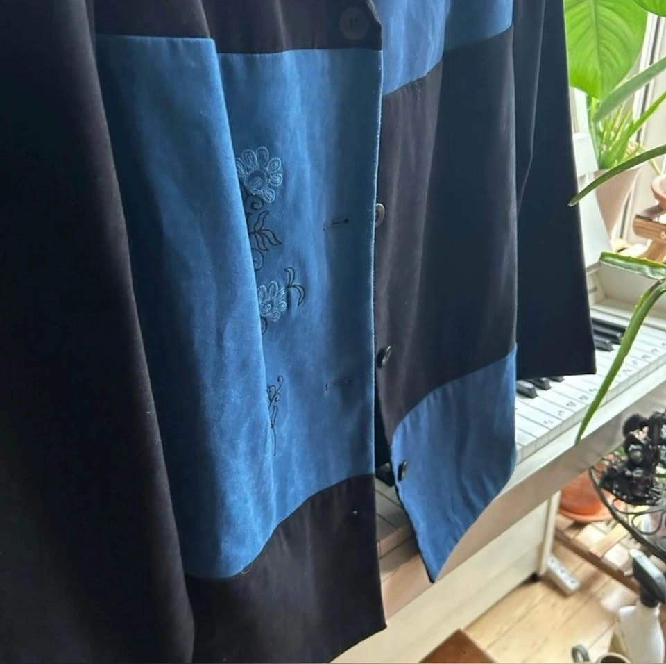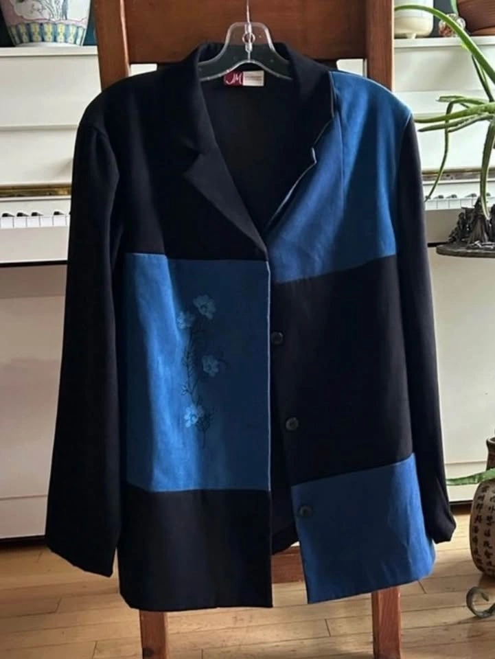 Barely worn, in great condition. Some minor pilling as shown. Size US L. Chic black and blue jacket from JM Collection. Stylish women's jacket featuring a striking black and blue color block design.