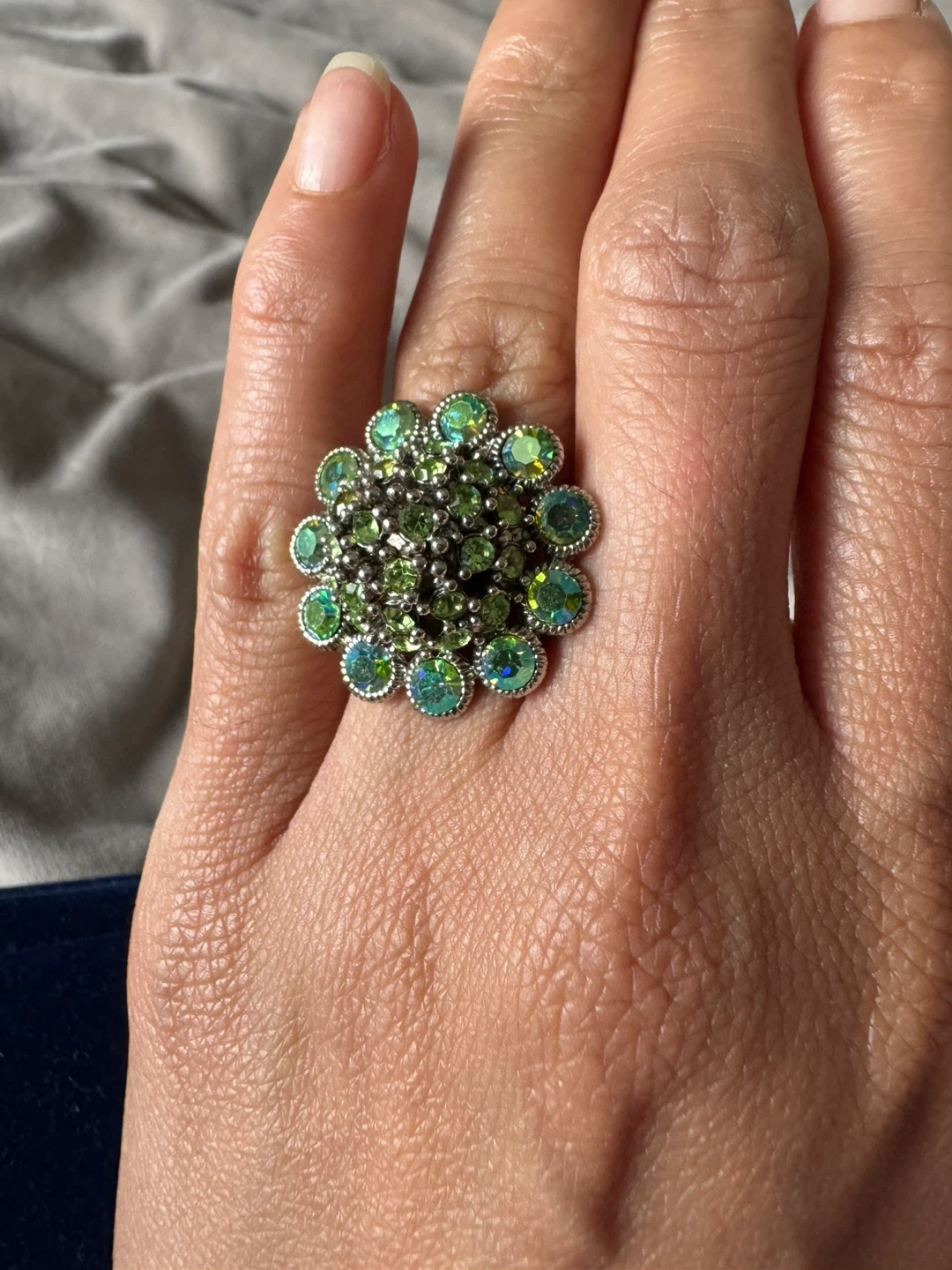 Flower Statement Ring with Green and Blue Stones