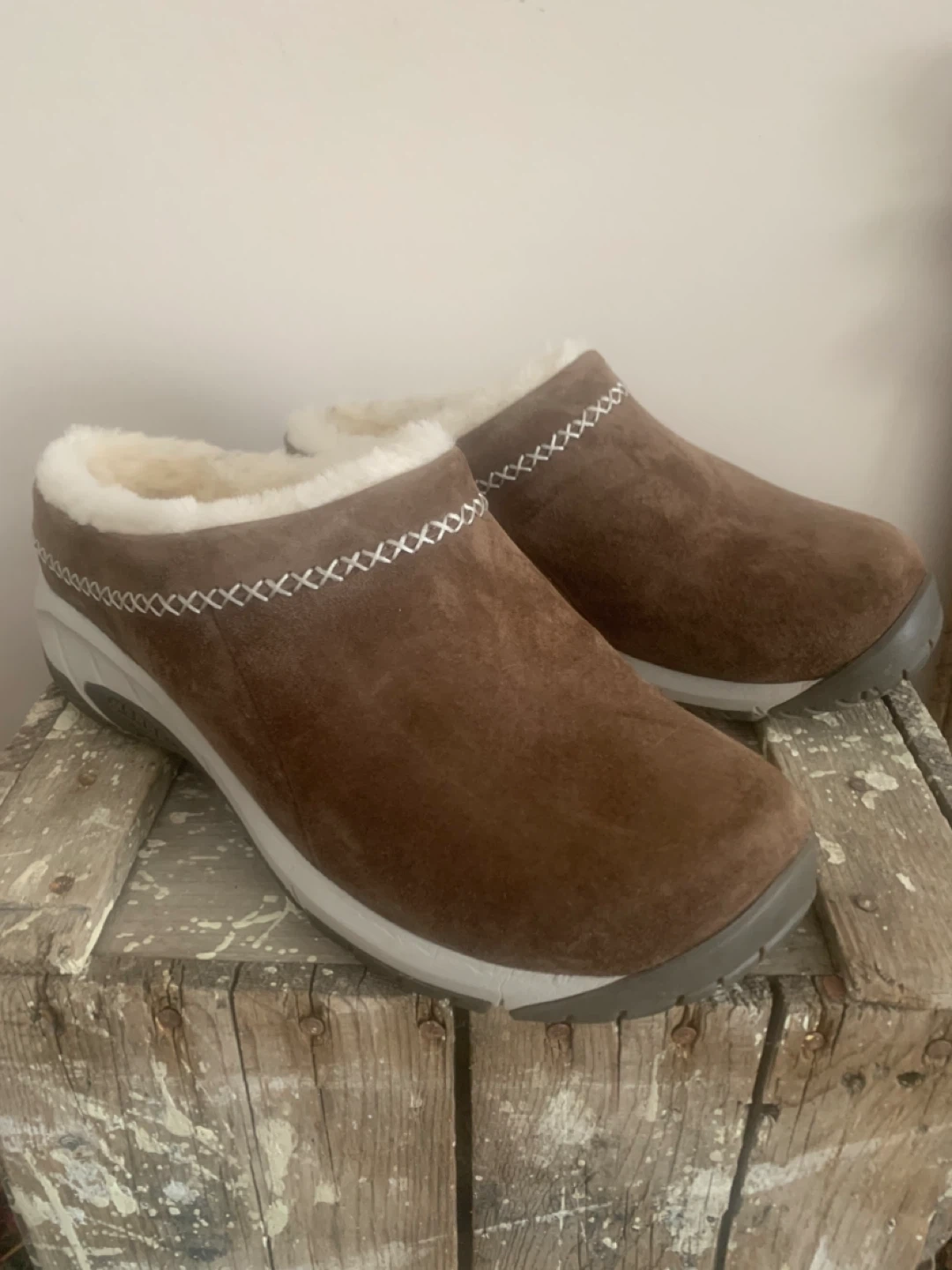Merrell Brown Suede Clogs with Shearling Lining