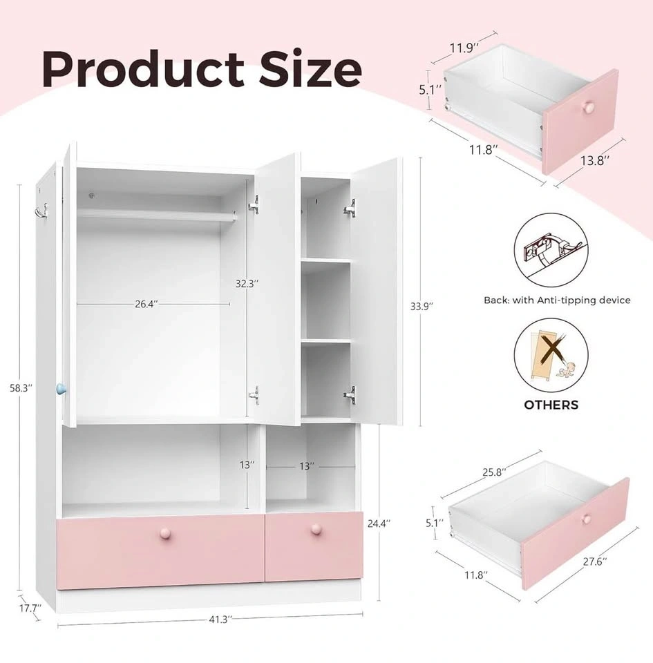 White 3-Door Armoire Wardrobe Closet with Hanging Rod, Shelves &