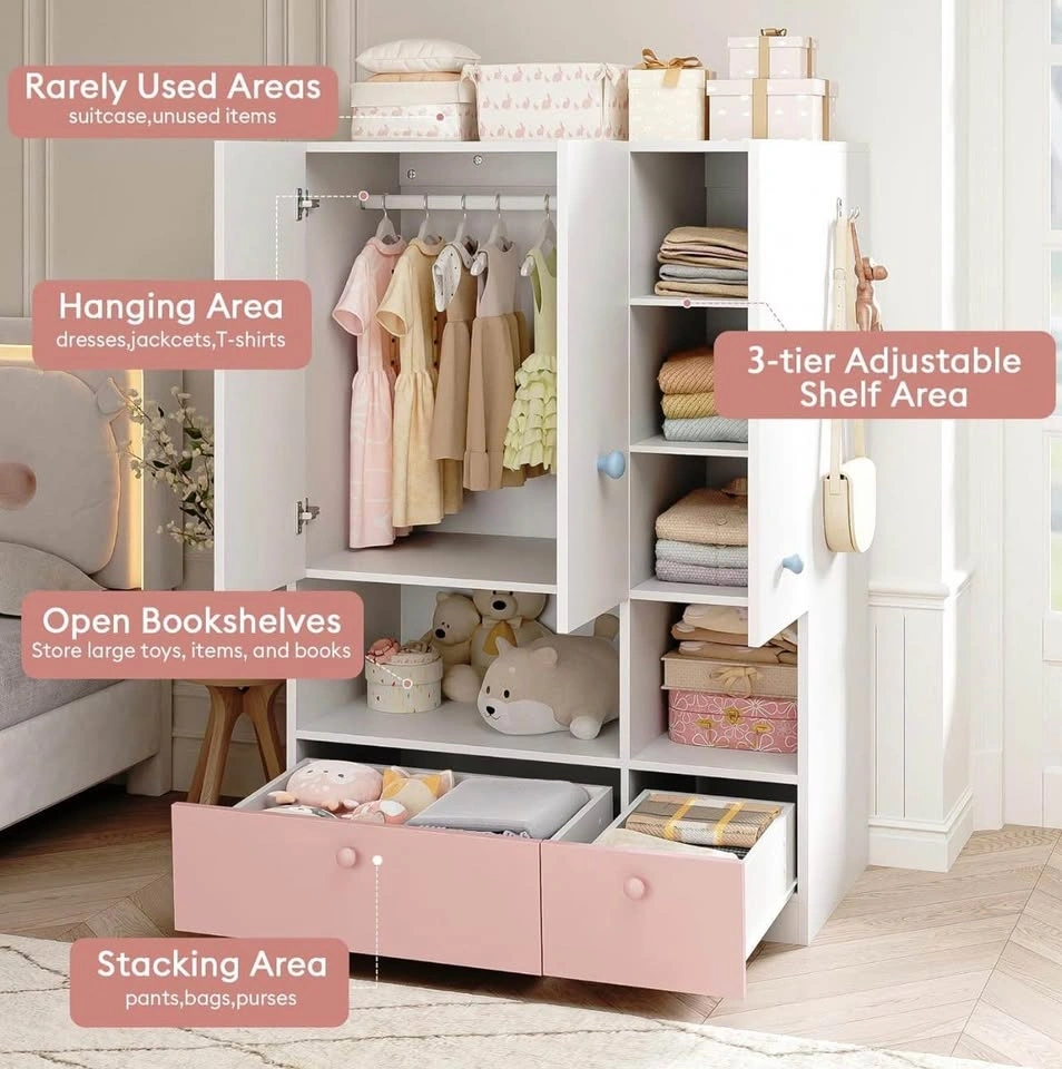 Brand new white freestanding armoire wardrobe closet with 3 doors. Includes a hanging rod, adjustable shelves, and drawers for organizing clothes, toys, and other essentials. Great for bedrooms, dorms, or extra storage space. Pickup in Hamilton. Item weight - 63 KG/138.8 lbs. Let me know if you're interested!