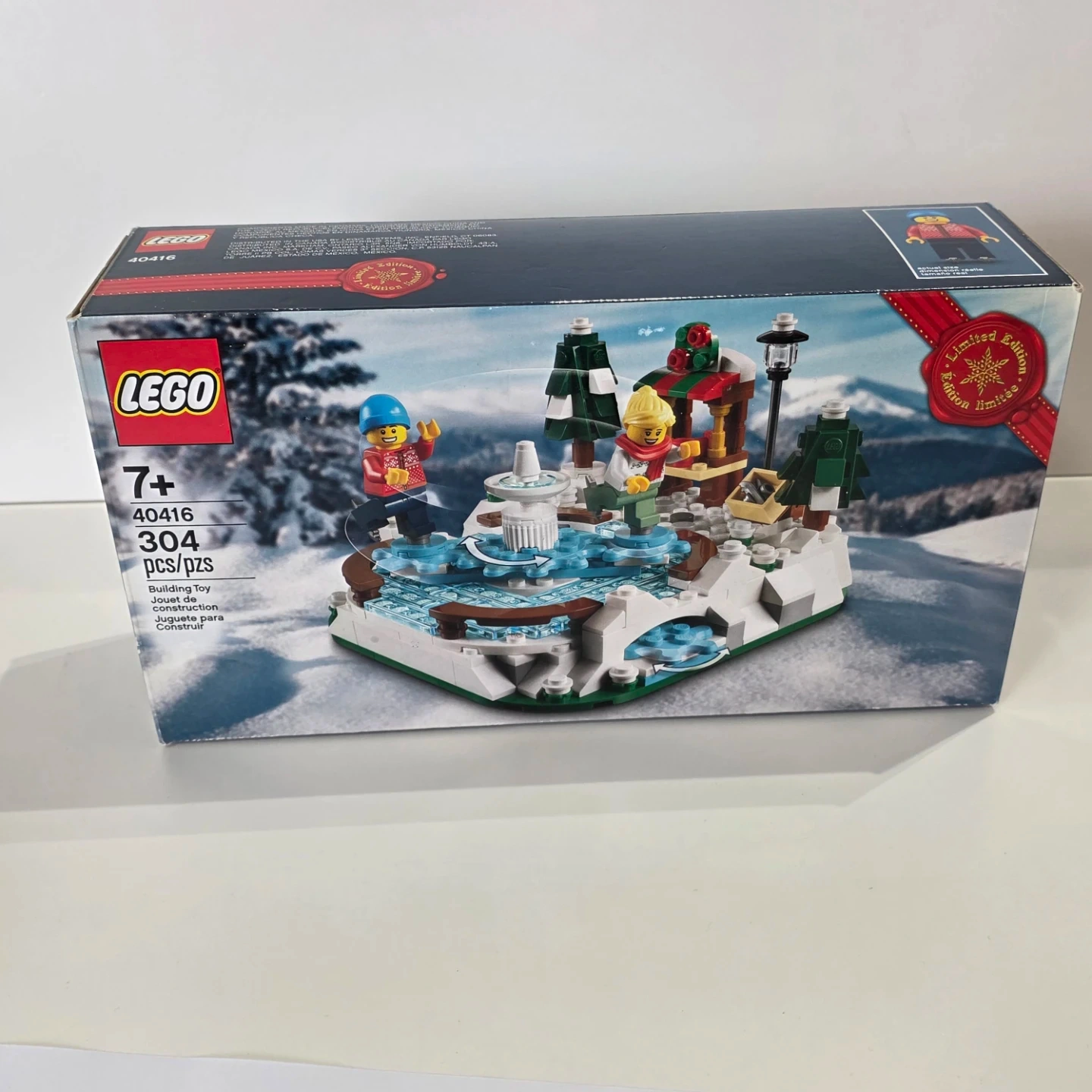This LEGO set features a charming winter scene with a skating pond and festive details. It includes 304 pieces for building fun. It's a great addition to any holiday display or LEGO collection!