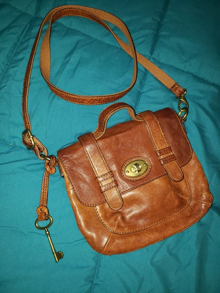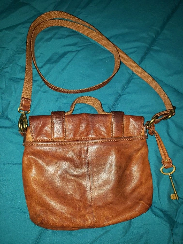 Soft leather in excellent condition. Multiple interior pockets. Strap can be adjusted or tucked inside and carried as a clutch. Features: Adjustable strap, Cross-body strap, Padded straps, Outer pockets, Inner pockets, Inner dividers, Key clip. Color: Brown. Material: Leather. Style: Crossbody. Brand: Fossil.
