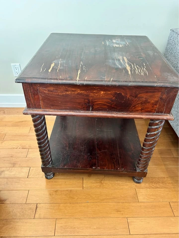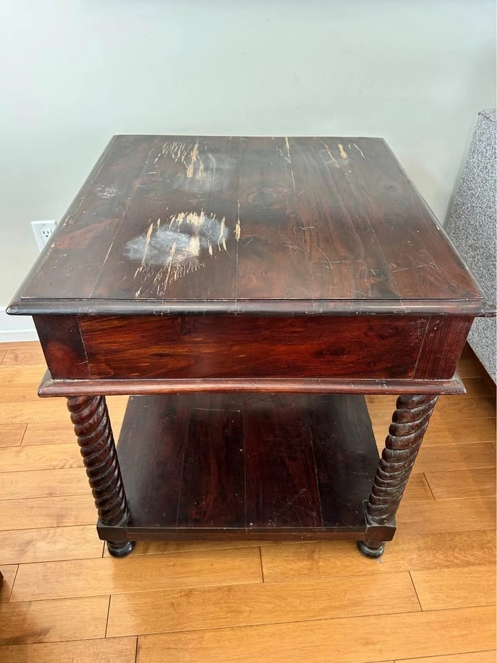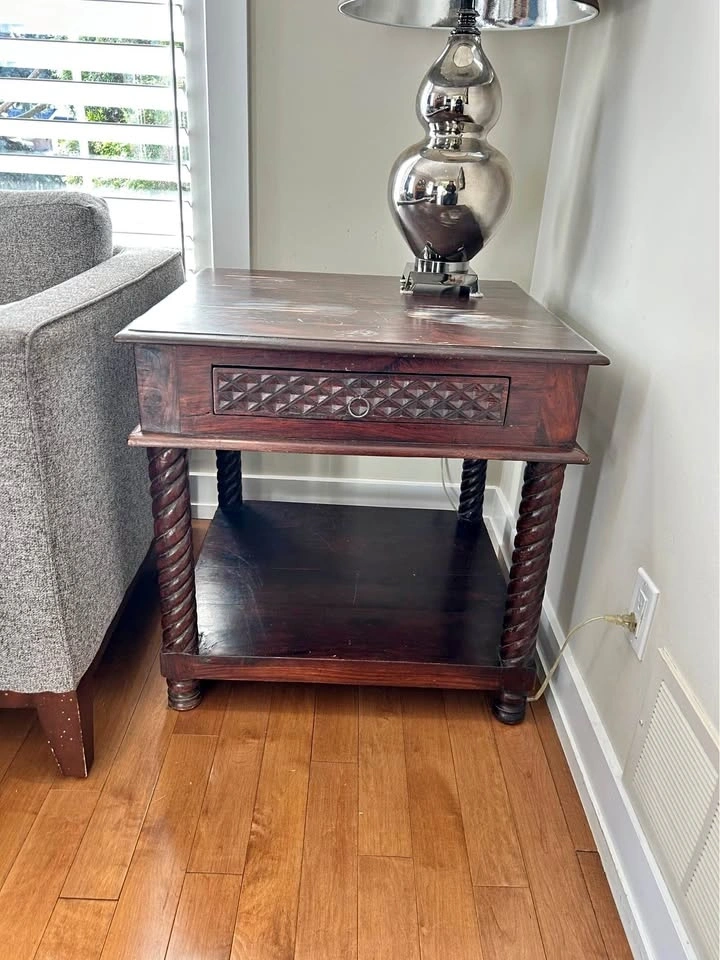 Solid Wood Carved End Table – Barley Twist Legs
