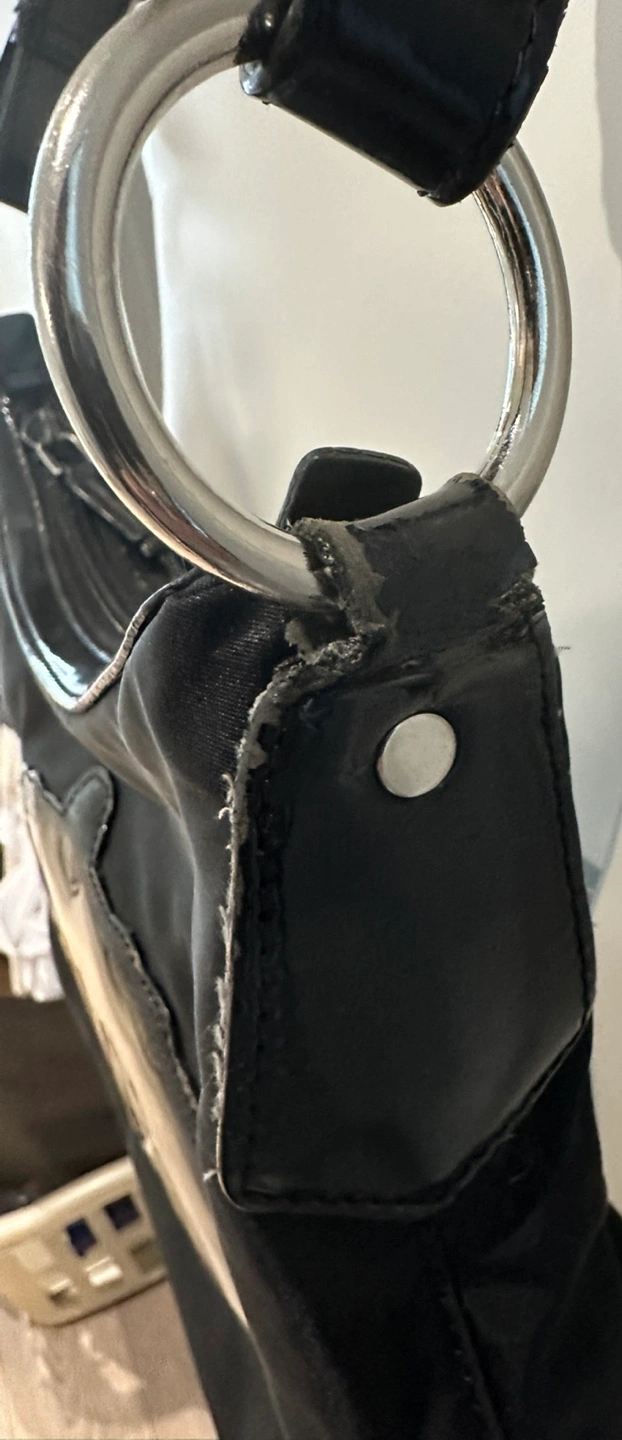 Authentic Prada Black Nylon leather detailed Shoulder Bag