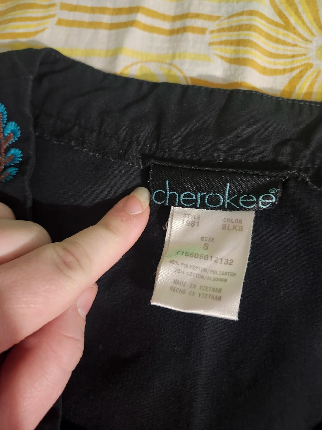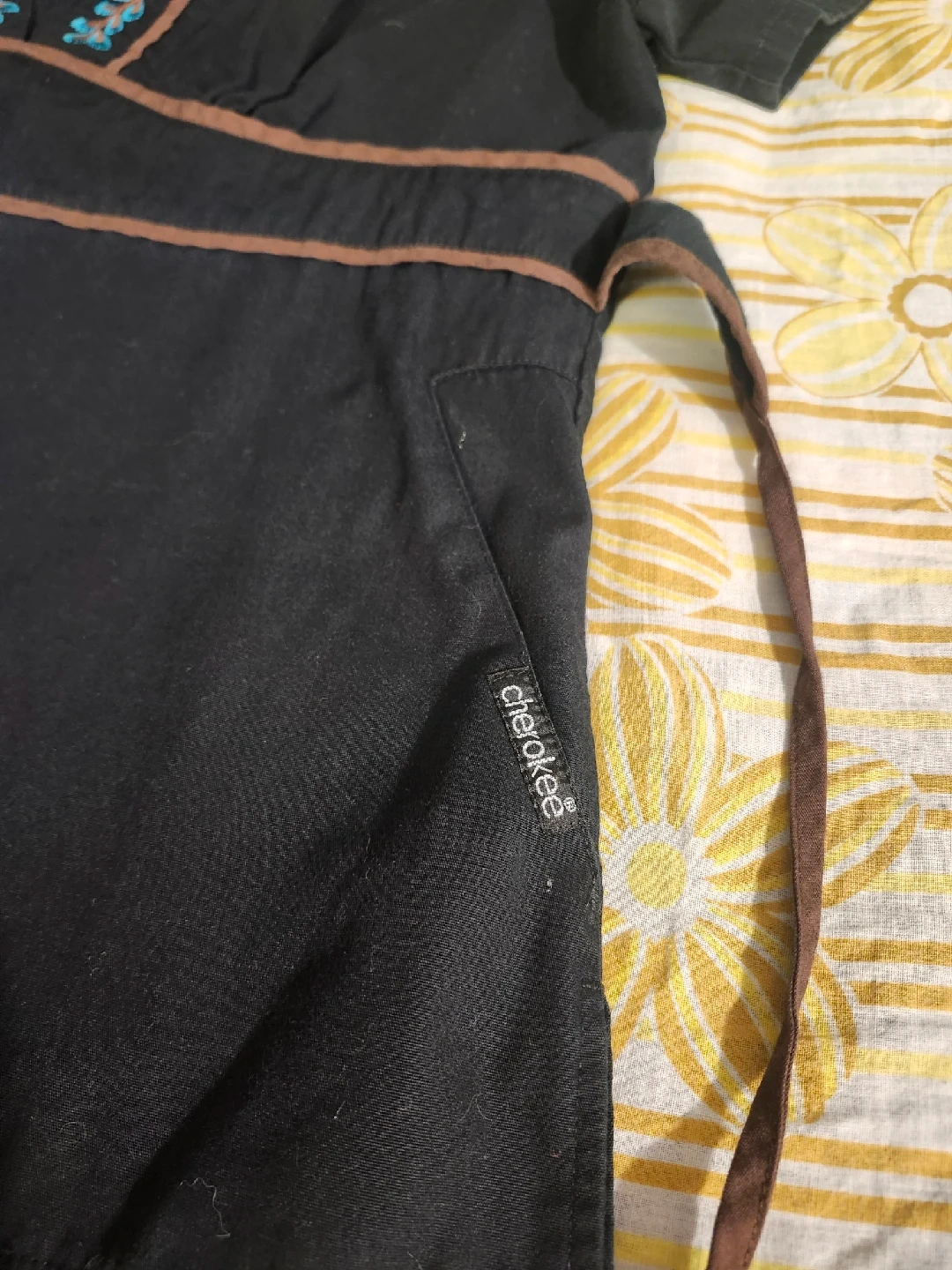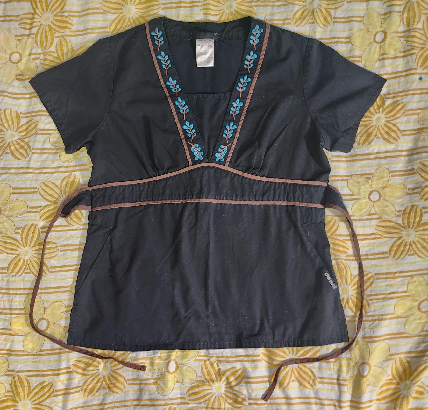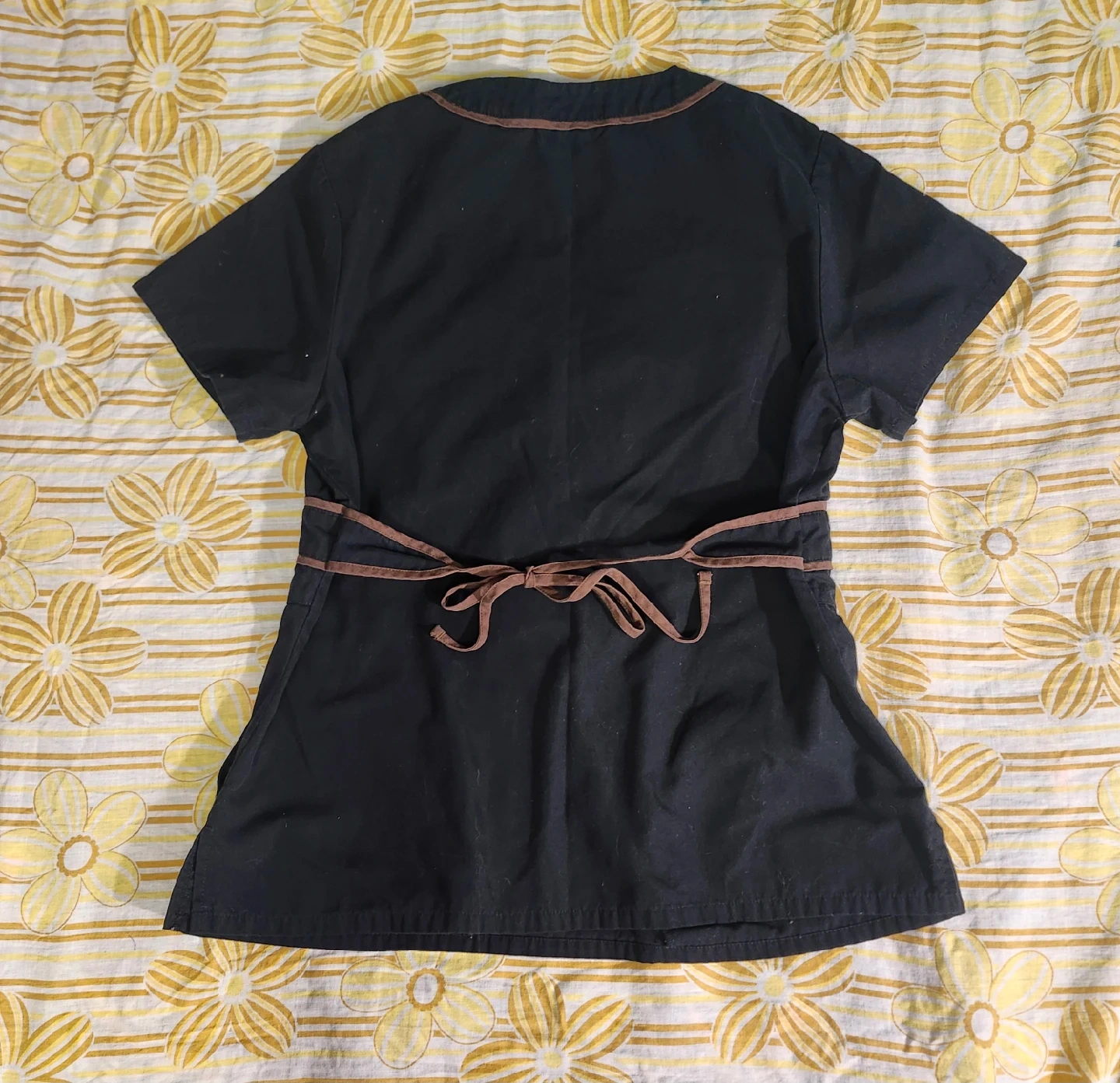 75adorable 2000s scrub top by Cherokee. super cute babydoll style with pockets on either side and an adjustable tie waist, so its functional too! can be worn as scrubs or for everyday for sure label size S, pit to pit laying flat measures just under 21in, length is just over 25in item is in good used vintage condition, with no flaws or stains that I could notice