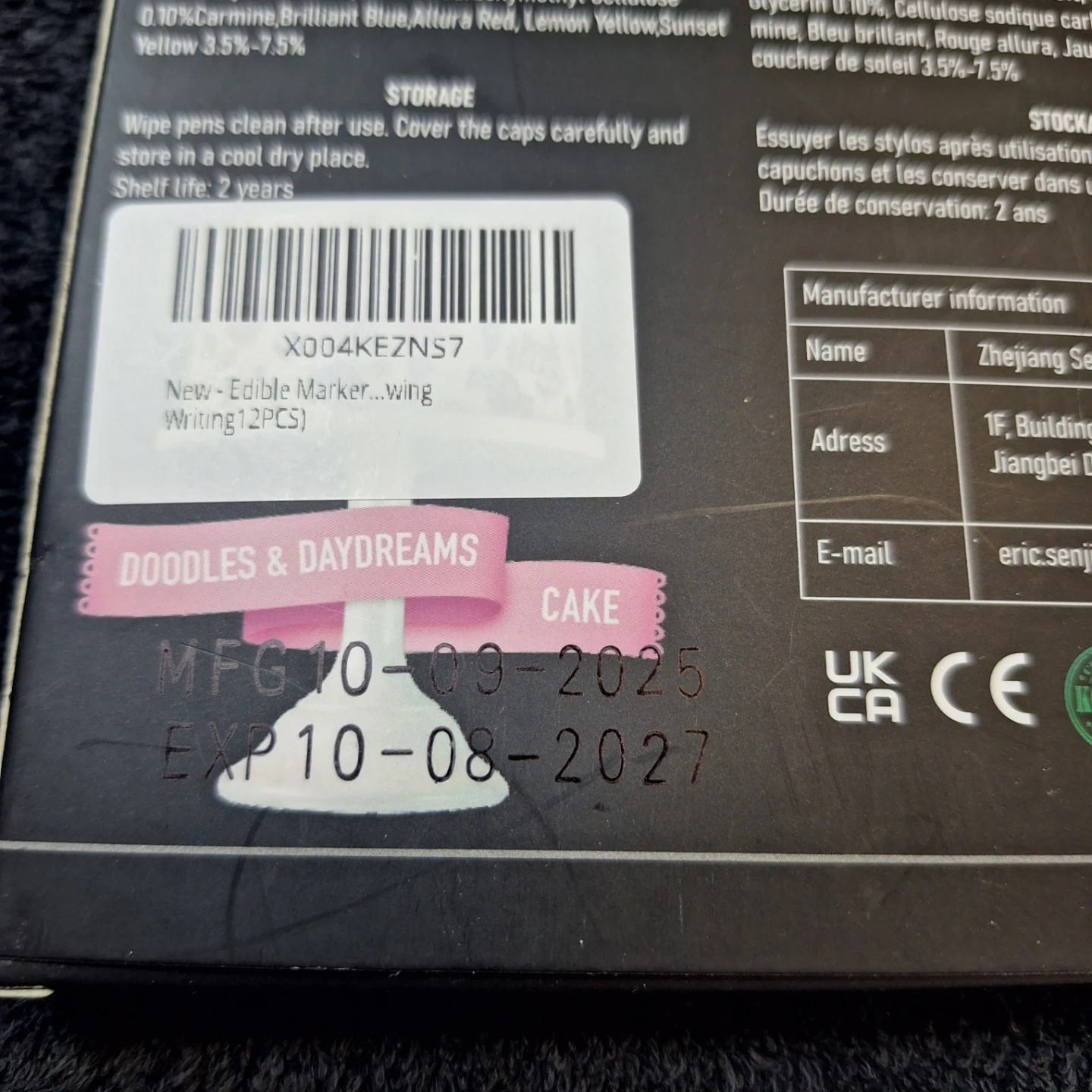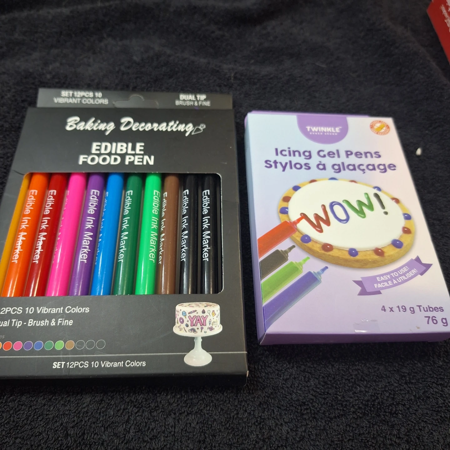 Set of 10 edible ink markers with dual tips, brush and fine. Each pen is 19g. Imported into Canada by Exclusive Brands. Best Before 2027/SE/23.