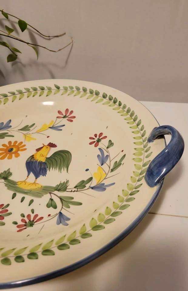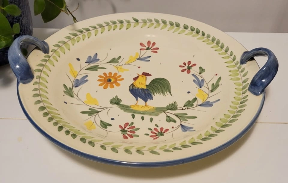 Ceramic serving dish with handles, 13.5" diameter.
