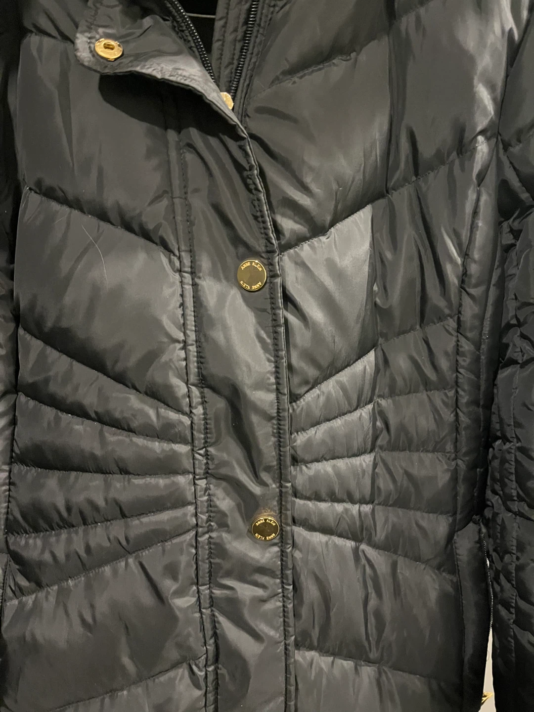 Selling a lovely Anne Klein black puffer coat in size large! It's in great condition and perfect for keeping warm during the colder months. The coat features a faux fur hood and gold button details. Also side zippers for easy driving Let me know if you have any questions!