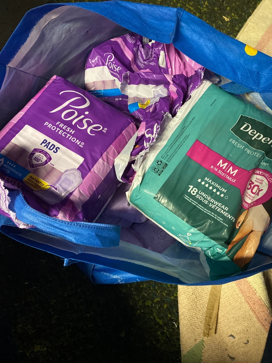 This bundle includes open Poise Fresh Protection Pads (moderate to long, 54 pads) and Depend Maximum Absorbency Underwear (M/M, 8-16 size, 18 count). Both offer fresh protection and absorbency.