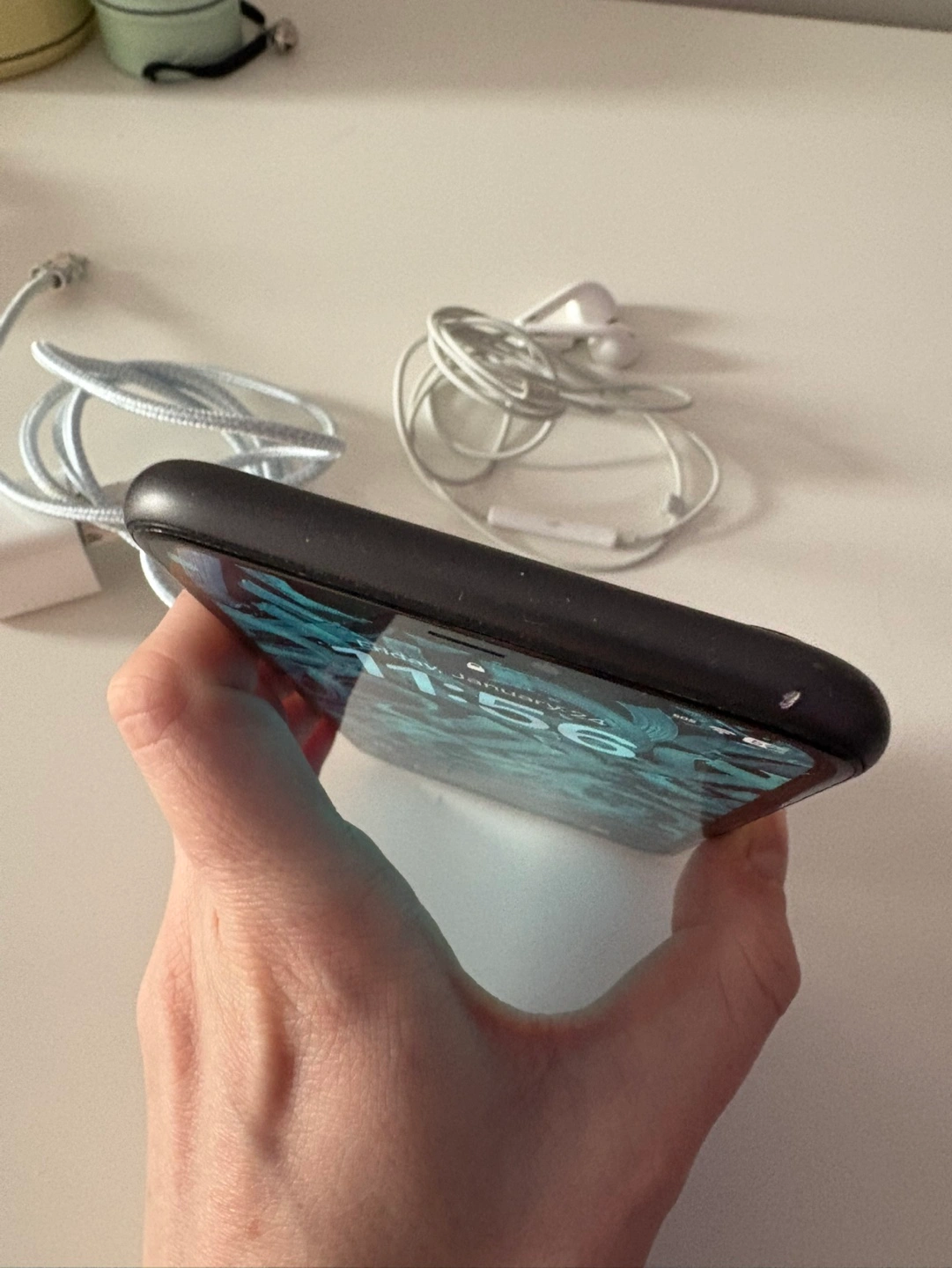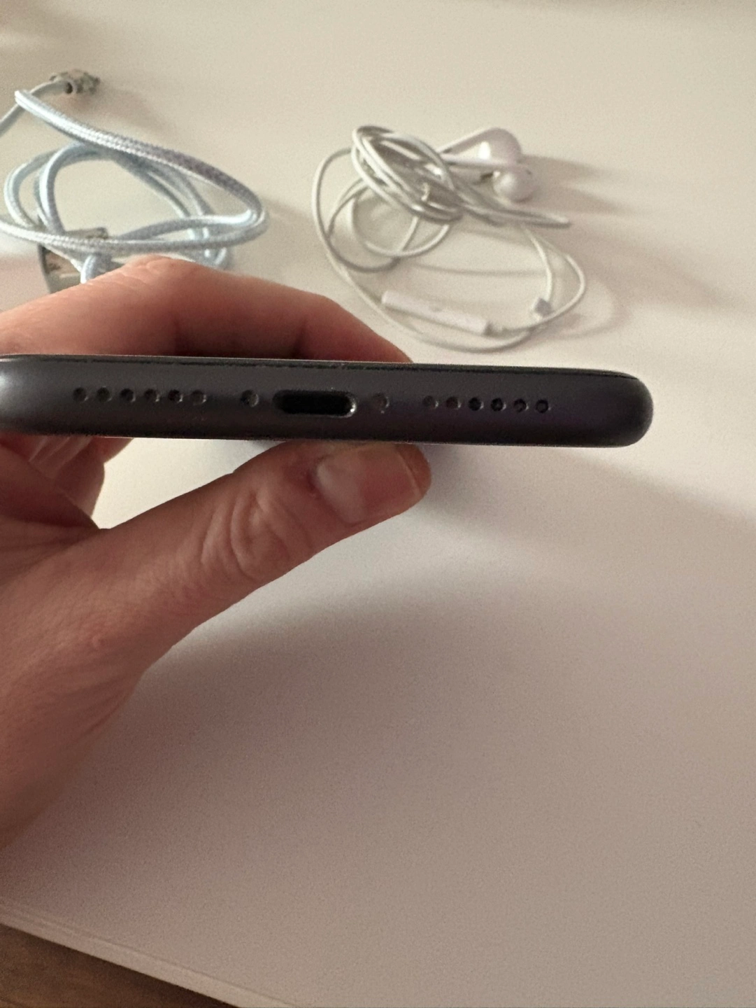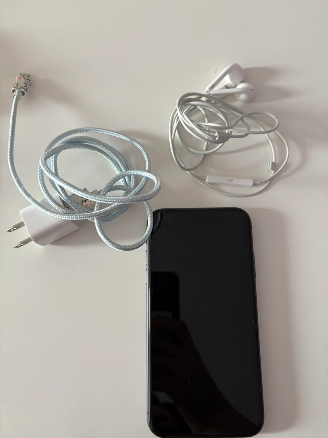 Used iPhone 11, black, 64 GB. Includes charger and Earpods.