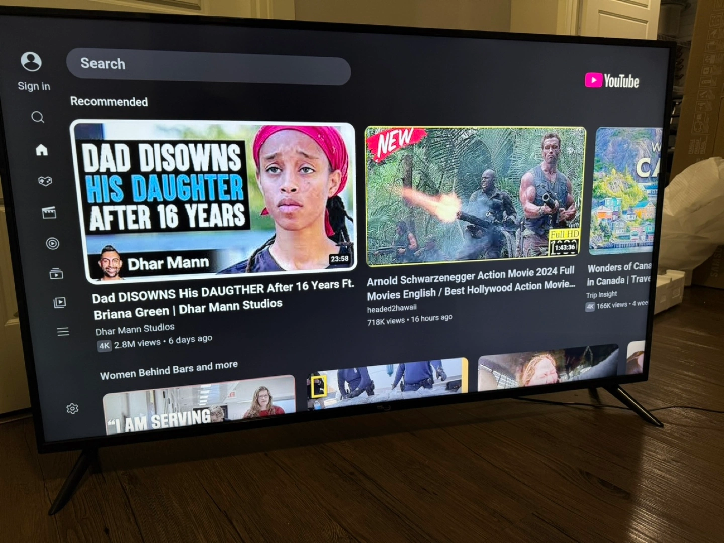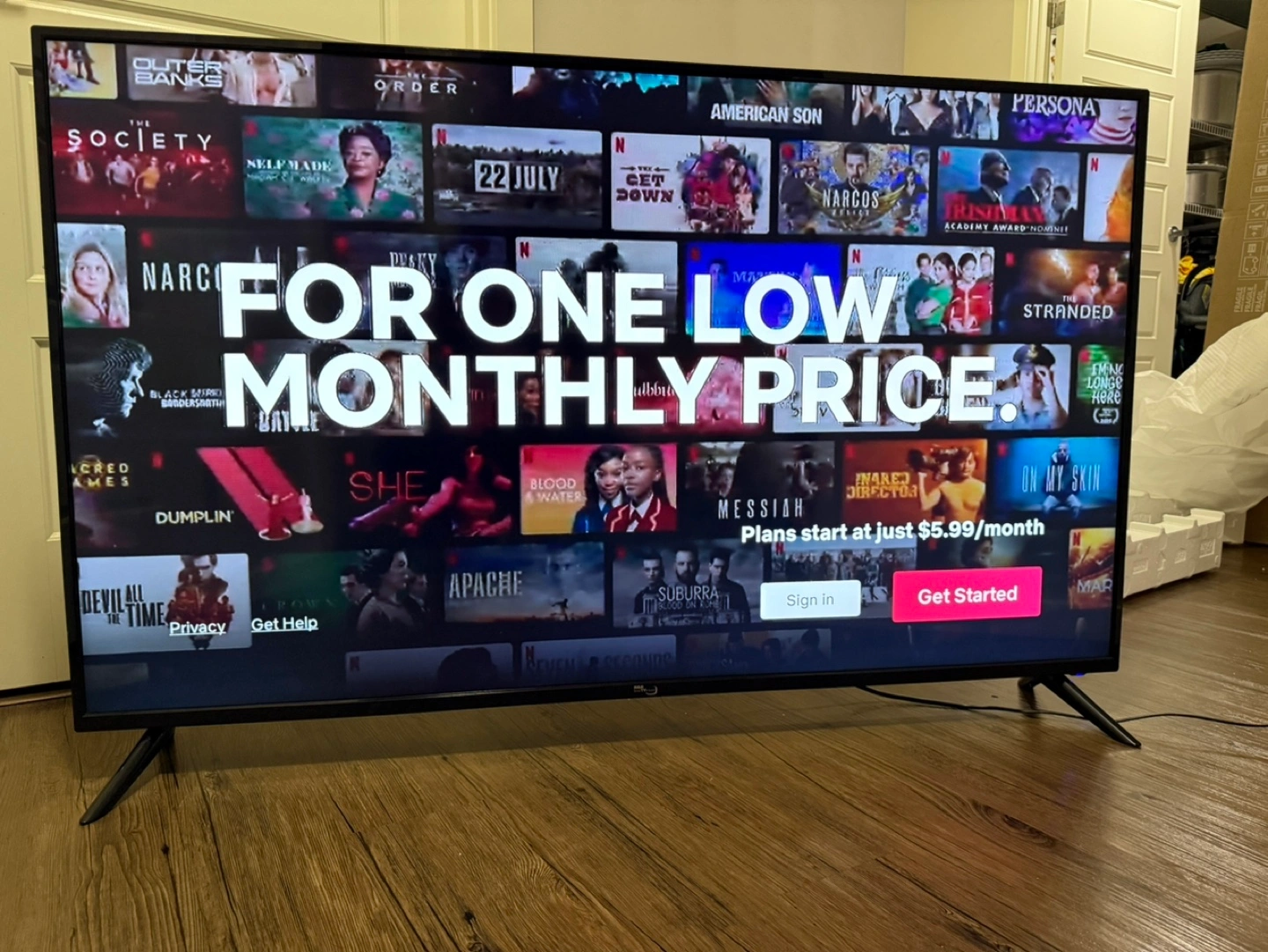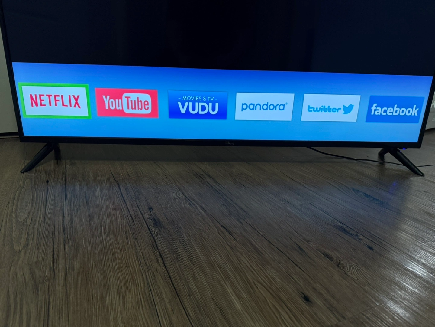 Smart TV with built-in apps like Netflix, YouTube, Vudu, Pandora, Twitter, and Facebook.