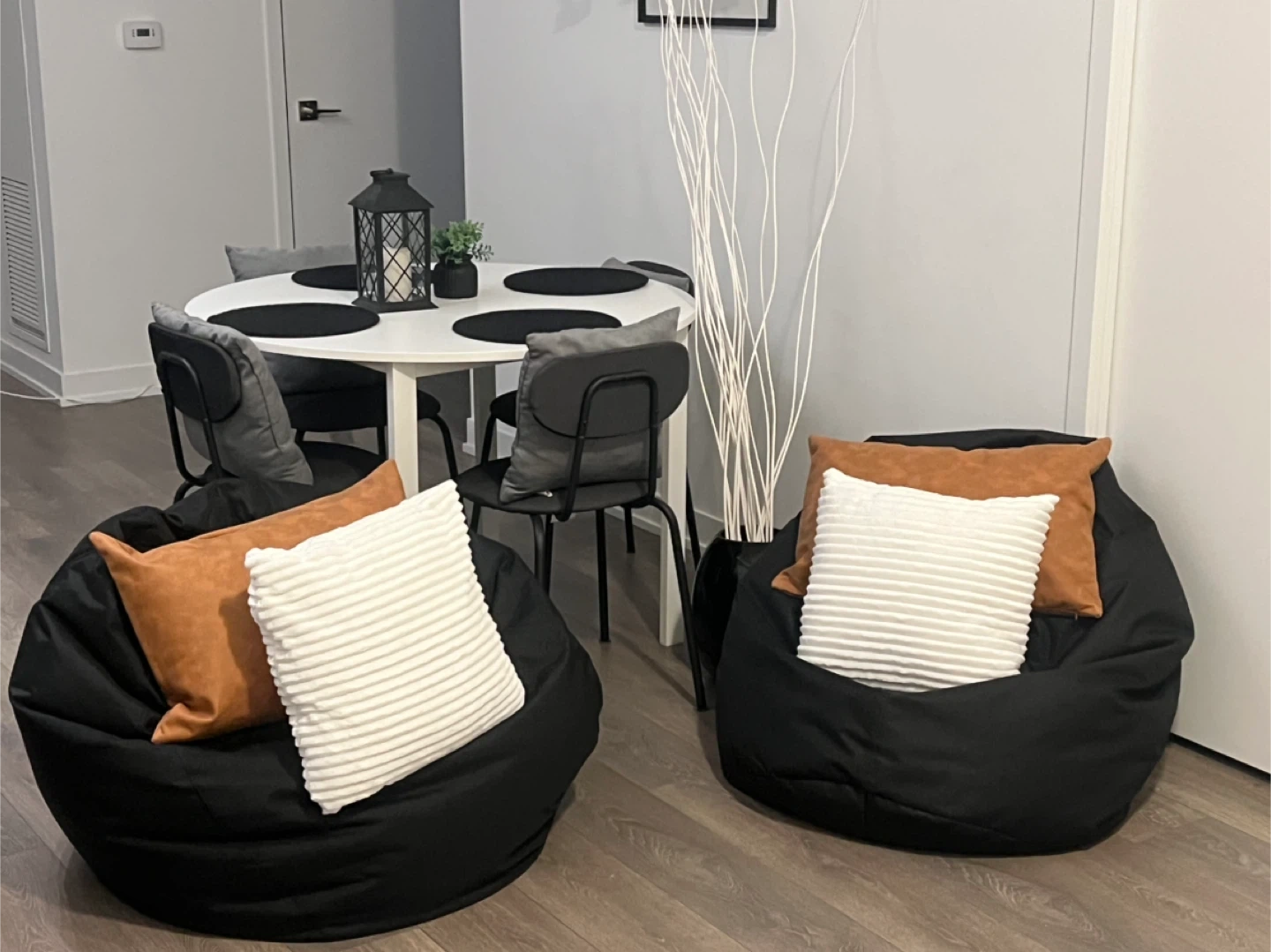 Set of 2 Black Bean Bag Chairs with Accent Pillows